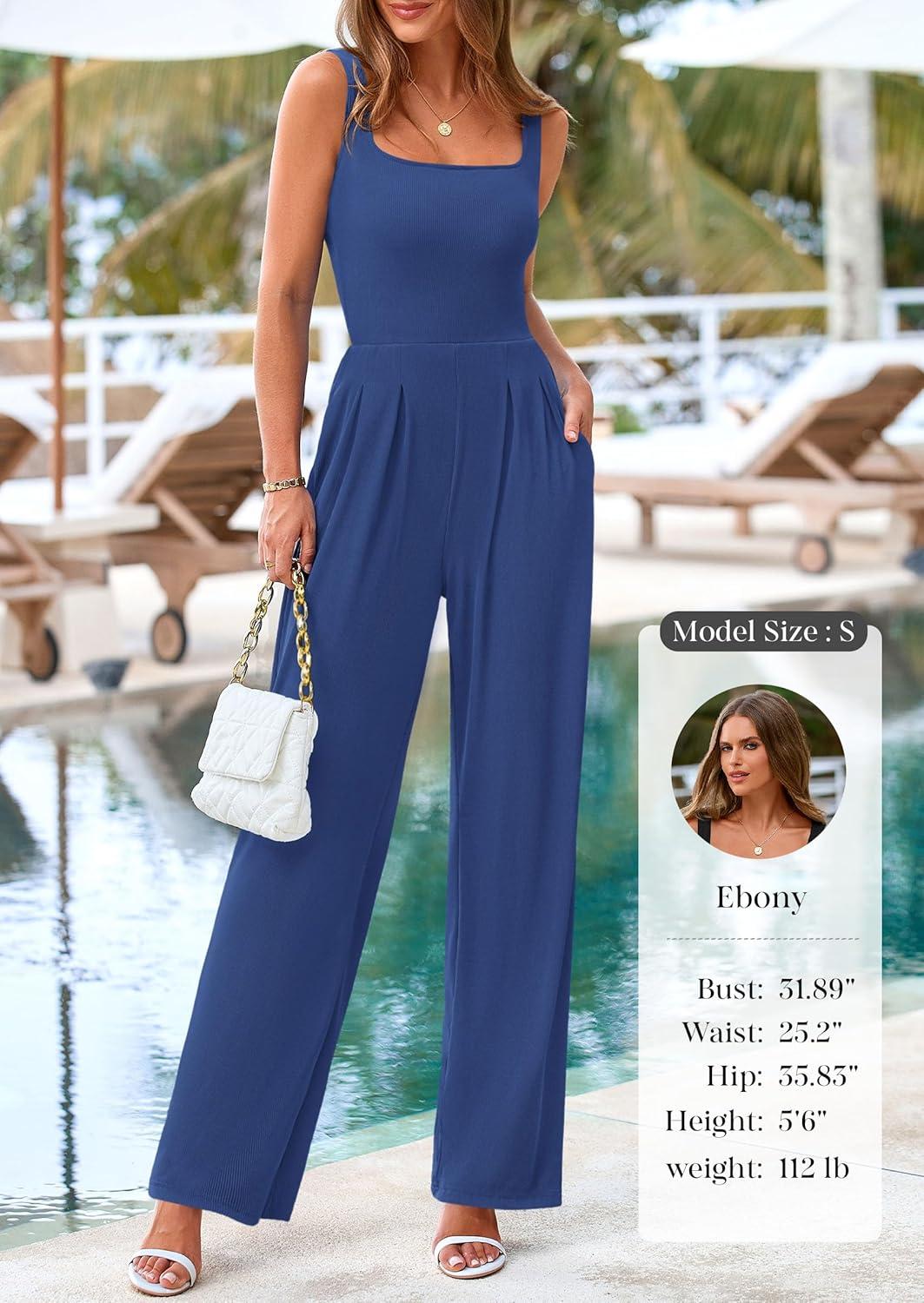 Be the first to review “PRETTYGARDEN Summer Sleeveless Jumpsuits for Women Dressy Square Neck Wide Leg Pants Knit One Piece Rompers Fashion Clothing(Grey Blue)”