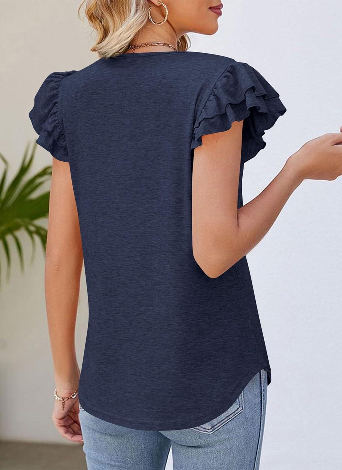 PRETTYGARDEN Summer Tops for Women 2025 Spring Trendy Fashion Clothes Casual Ruffle V Neck Short Sleeve Shirts Blouses(Navy)