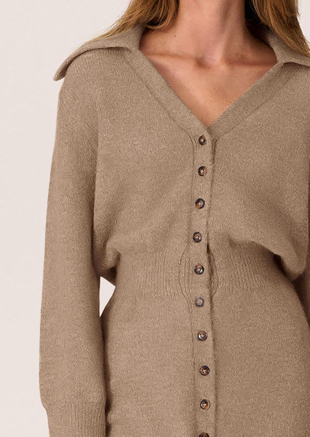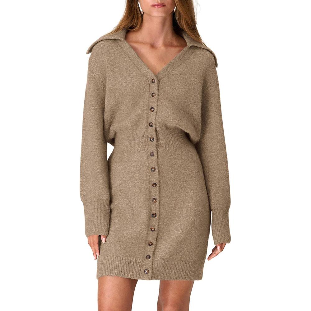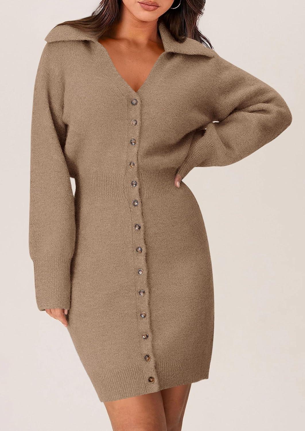PRETTYGARDEN Sweater Dresses for Women 2025 Trendy Long Sleeve Button Down Short Mini Fall Winter Dress(Camel)
