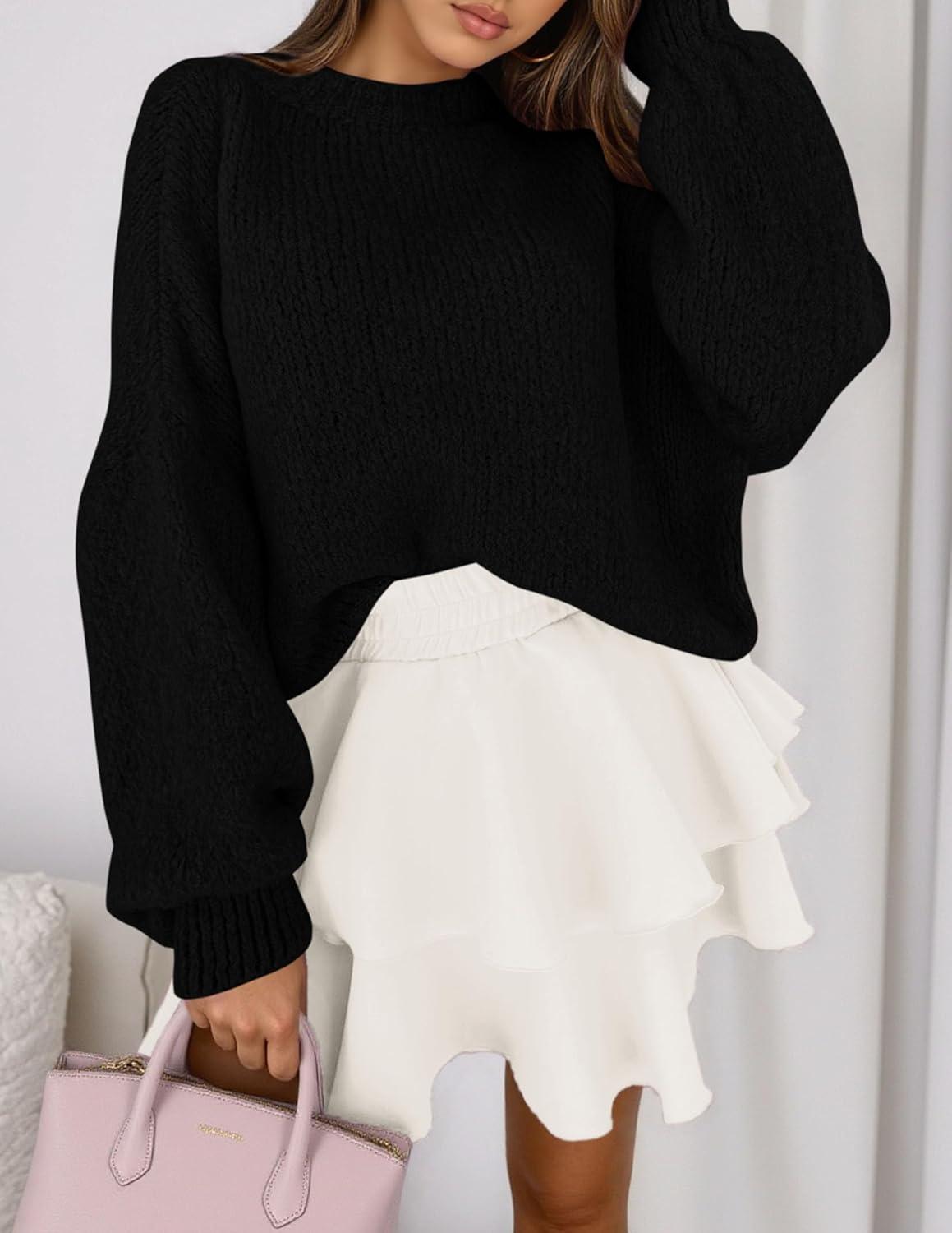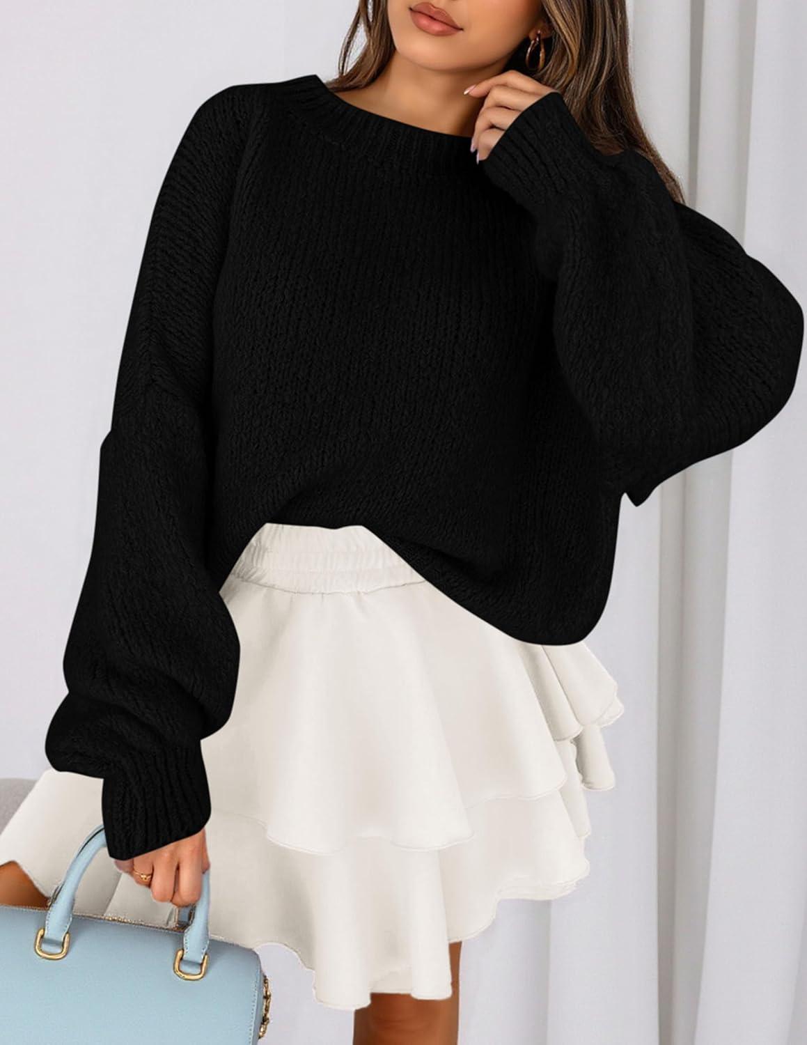 PRETTYGARDEN Sweaters for Women 2025 Fall Chunky Knit Long Sleeve Crew Neck Oversized Pullover Tops Winter Fashion Clothing(Black)