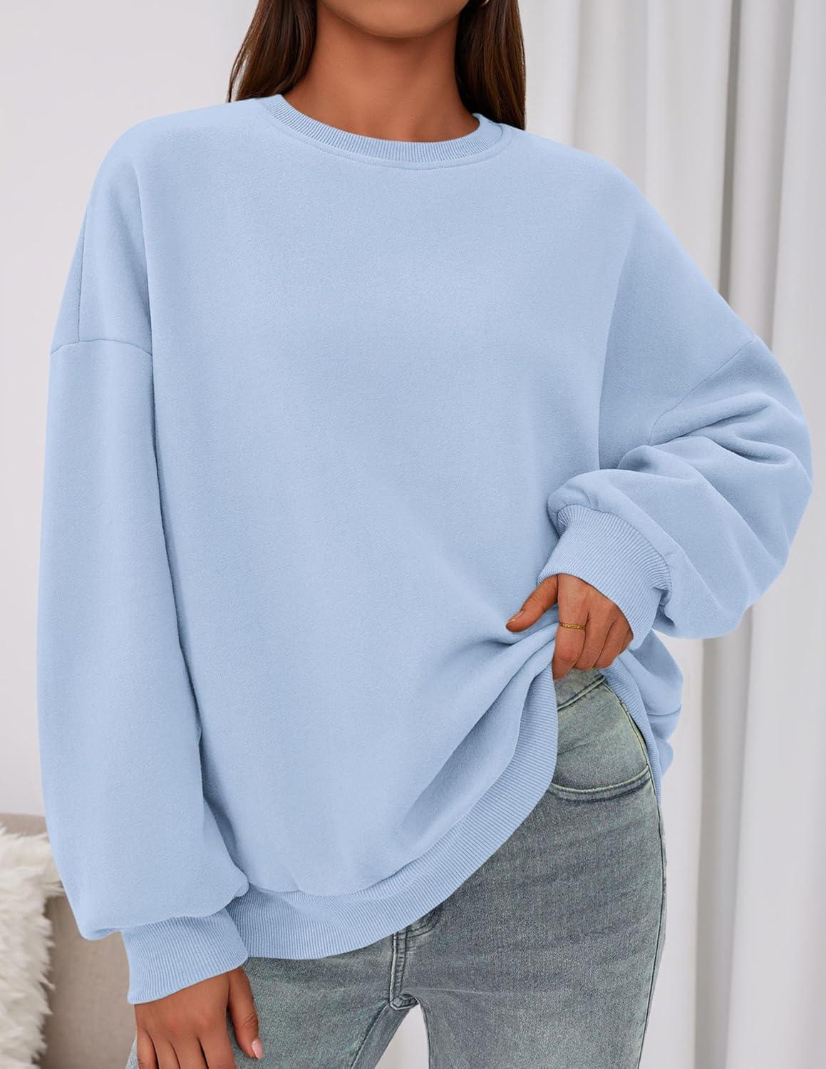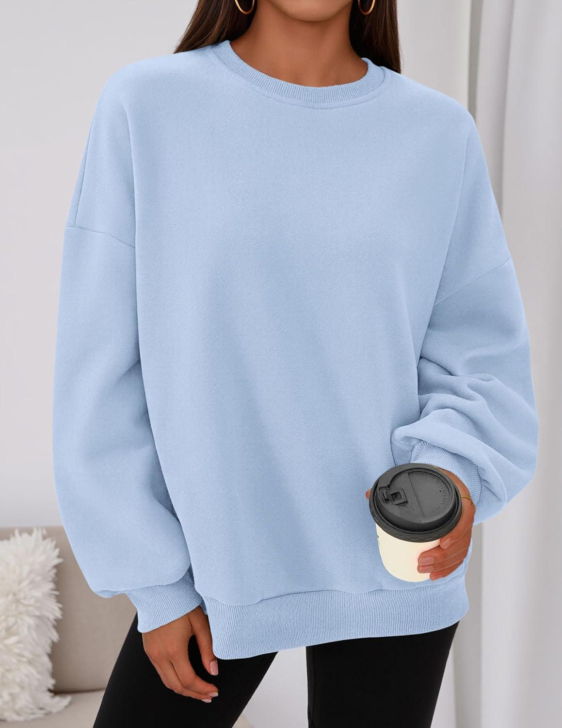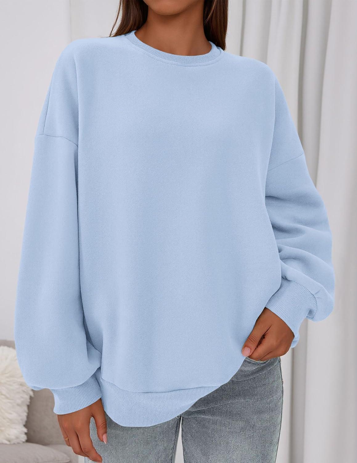 PRETTYGARDEN Sweatshirt for Women Oversized Crewneck Long Sleeve Pullover Fleece Top 2025 Fall Winter Fashion Outfits Clothes(Light Blue)