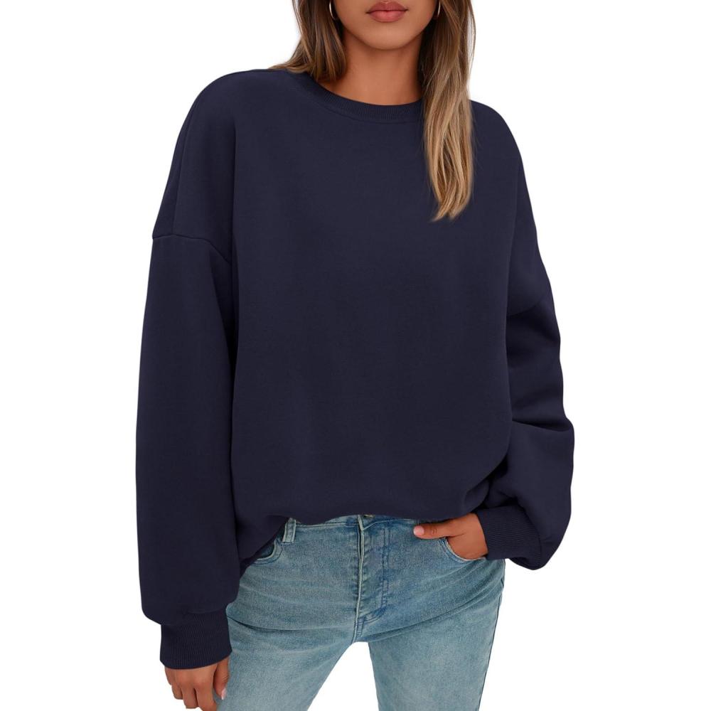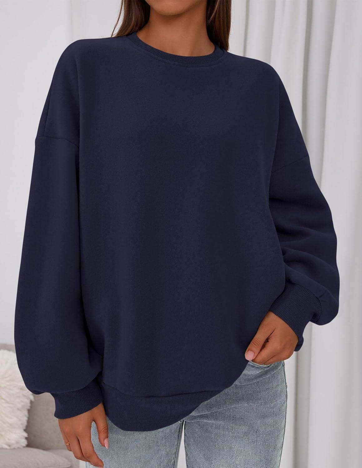 PRETTYGARDEN Sweatshirt for Women Oversized Crewneck Long Sleeve Pullover Fleece Top 2025 Fall Winter Fashion Outfits Clothes(Navy Blue)