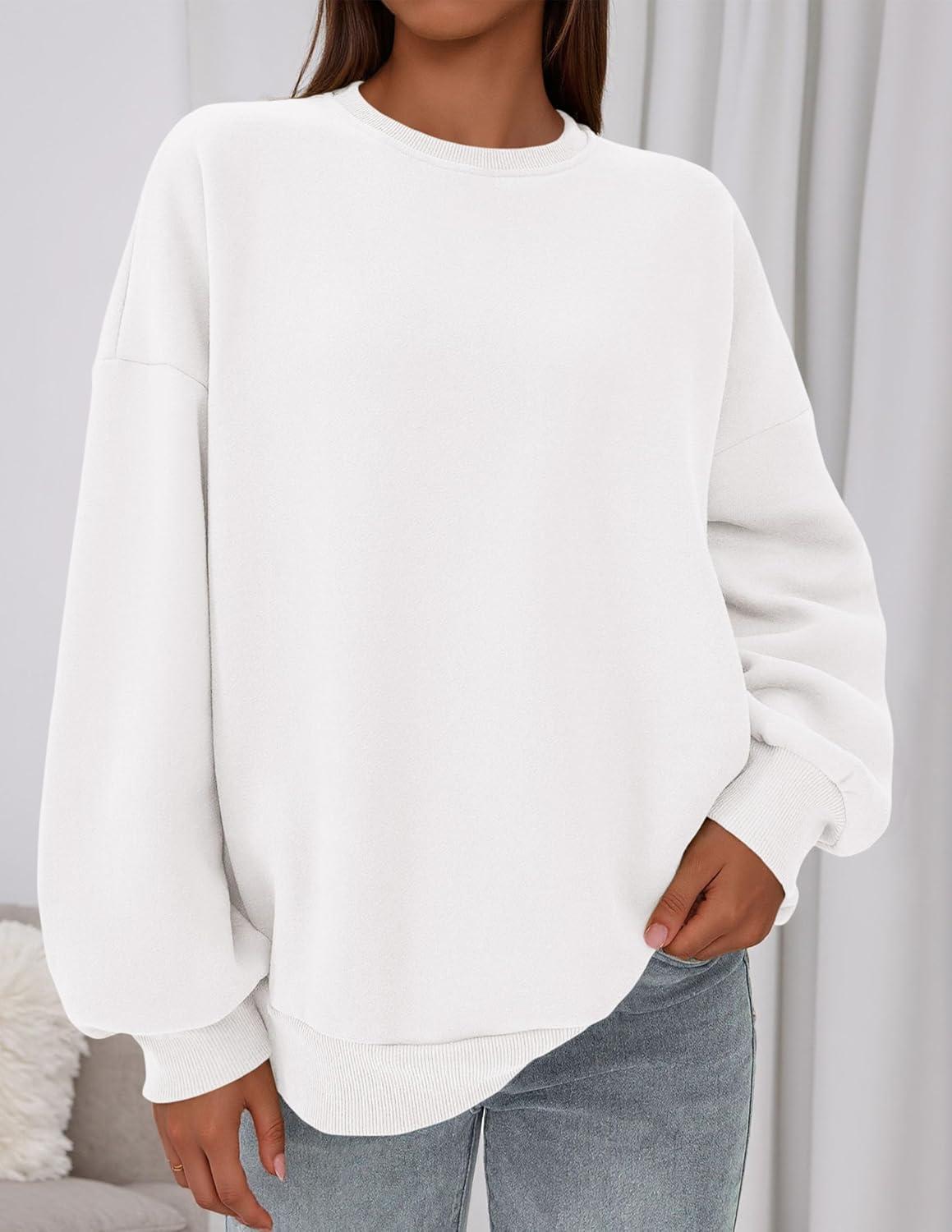 PRETTYGARDEN Sweatshirt for Women Oversized Crewneck Long Sleeve Pullover Fleece Top 2025 Fall Winter Fashion Outfits Clothes(White)