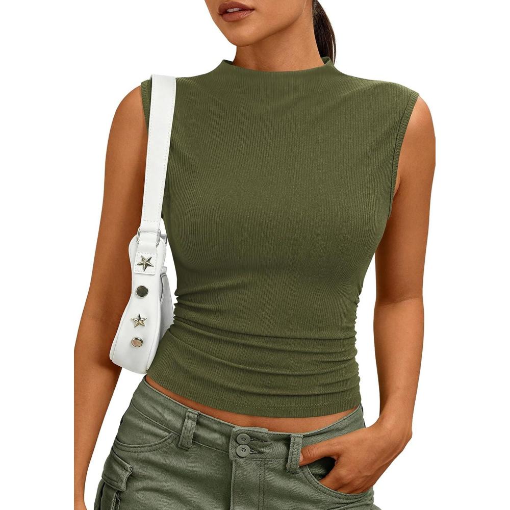 PRETTYGARDEN Tank Tops for Women 2026 Summer Mock Neck Ribbed Knit Slim Fitted Shirts Going Out Top Spring Fashion Clothes(Army Green)