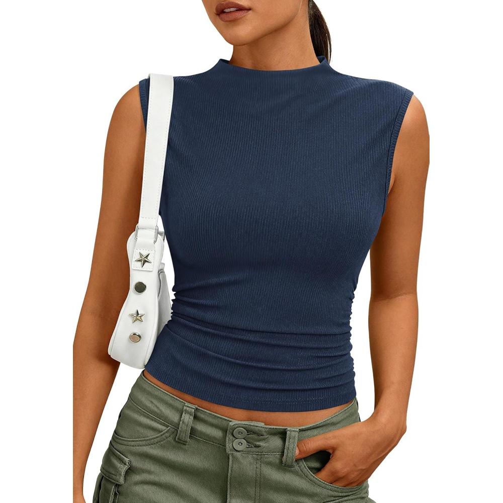 PRETTYGARDEN Tank Tops for Women 2026 Summer Mock Neck Ribbed Knit Slim Fitted Shirts Going Out Top Spring Fashion Clothes(Royal Blue)