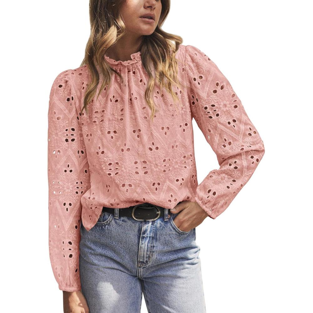 Be the first to review “PRETTYGARDEN Tops for Women Trendy 2025 Fall Long Sleeve Blouses Dressy Casual Embroidered Eyelet Shirts Going Out Outfits(Pink)”