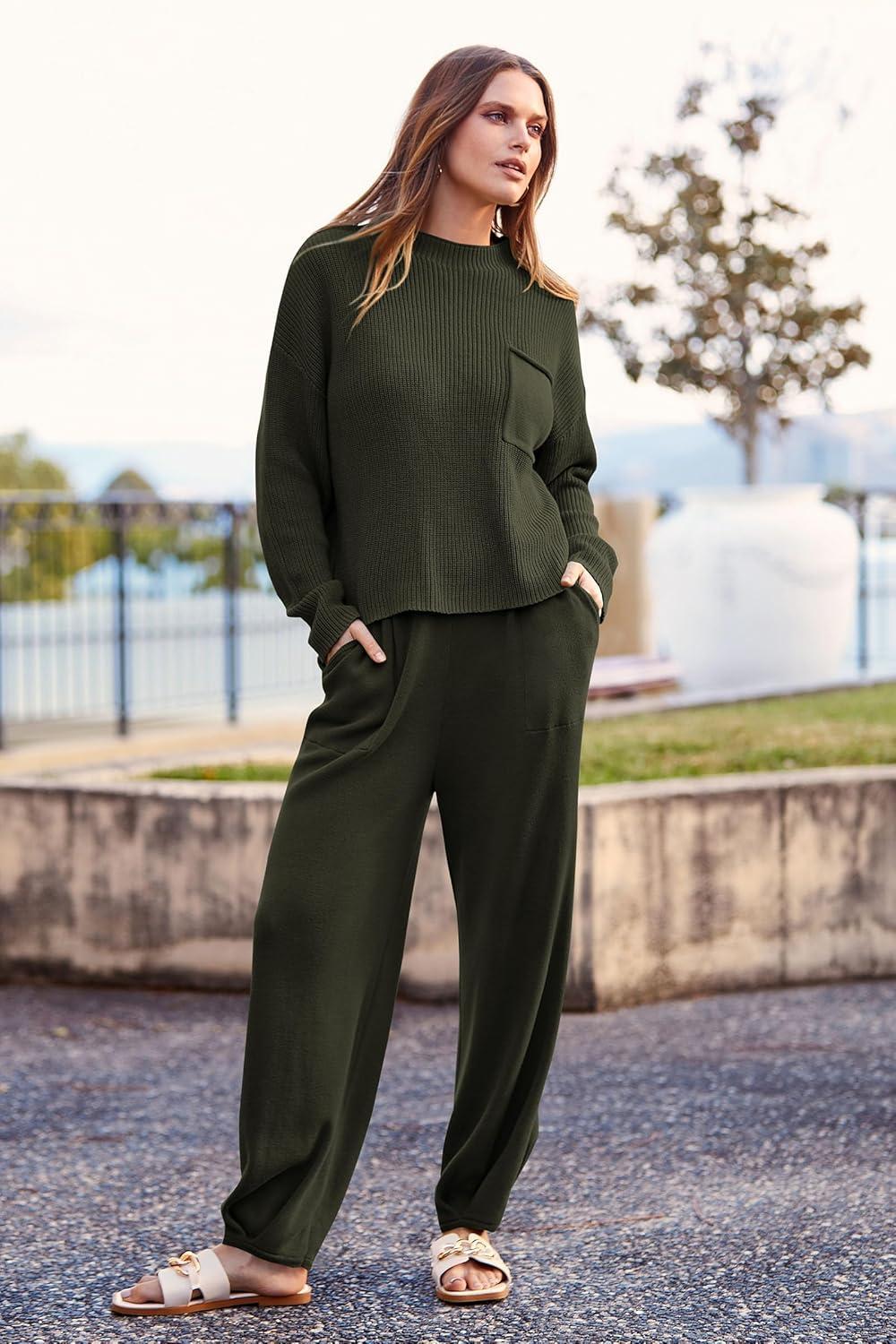 imagePRETTYGARDEN Two Piece Sets for Women 2025 Pullover Sweater High Waisted Sweatpants Tracksuit Lounge Set Fall Winter OutfitsArmy Green