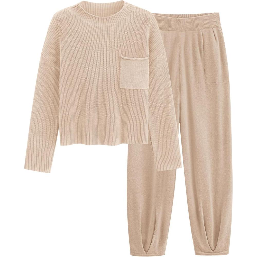 imagePRETTYGARDEN Two Piece Sets for Women 2025 Pullover Sweater High Waisted Sweatpants Tracksuit Lounge Set Fall Winter OutfitsLight Khaki