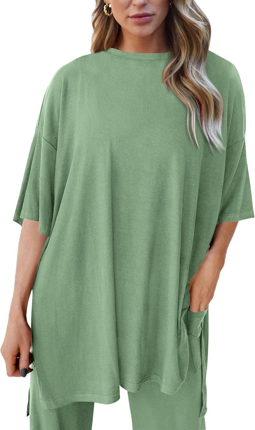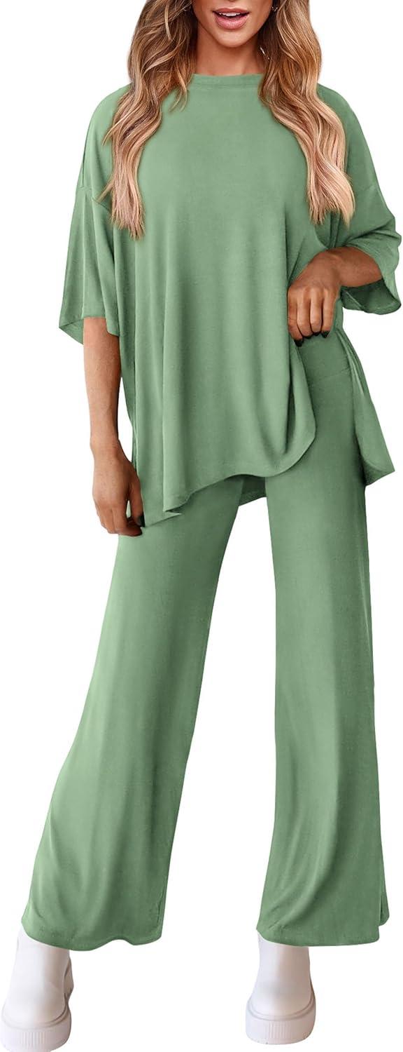 PRETTYGARDEN Two Piece Sets For Women Summer Fashion Lounge Matching Set 2025 Travel Vacation Airport Outfits Clothing(Bean Green)