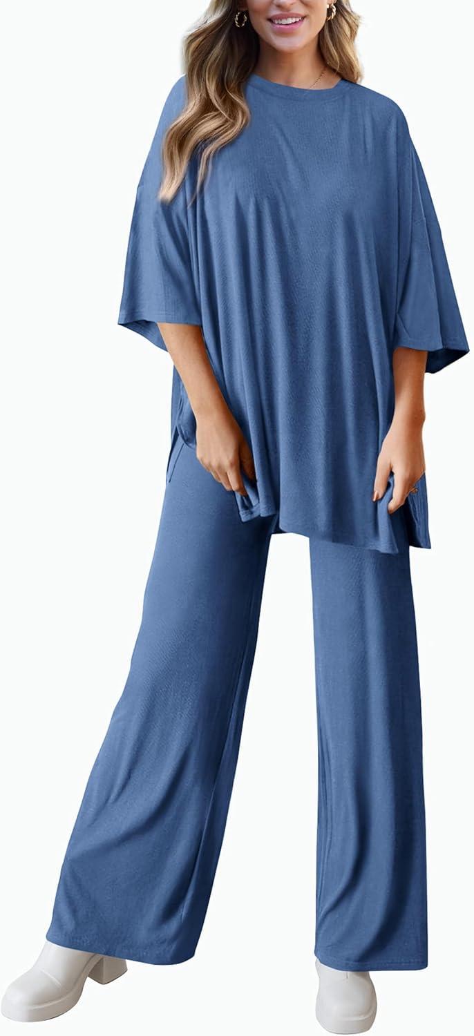 PRETTYGARDEN Two Piece Sets For Women Summer Fashion Lounge Matching Set 2025 Travel Vacation Airport Outfits Clothing(Blue)