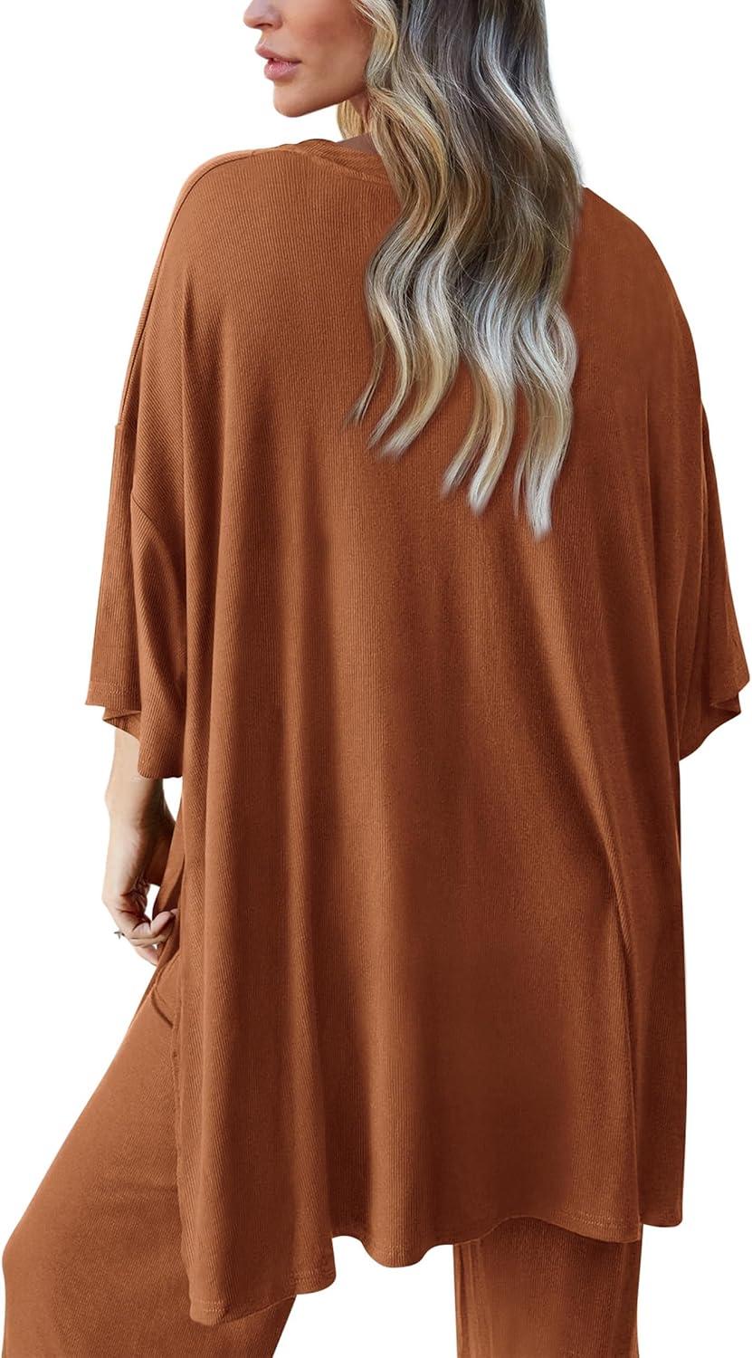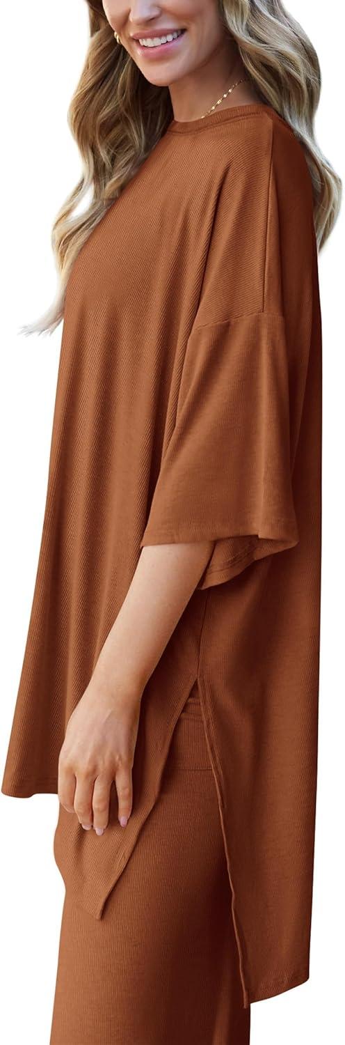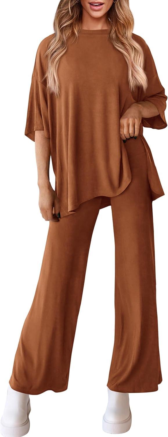PRETTYGARDEN Two Piece Sets For Women Summer Fashion Lounge Matching Set 2025 Travel Vacation Airport Outfits Clothing(Brown)