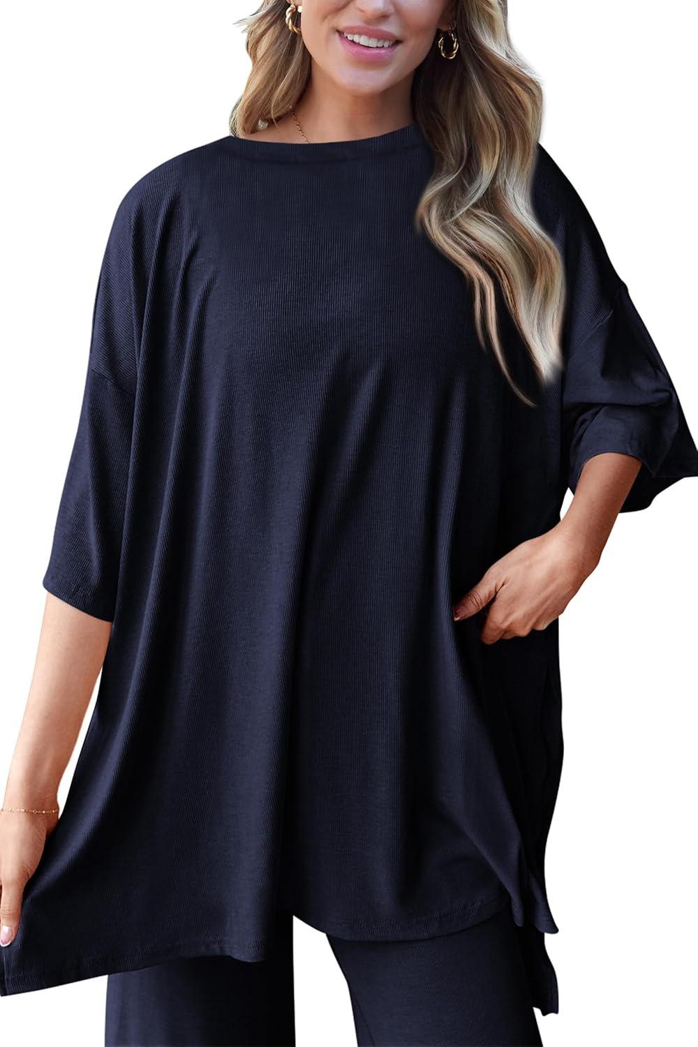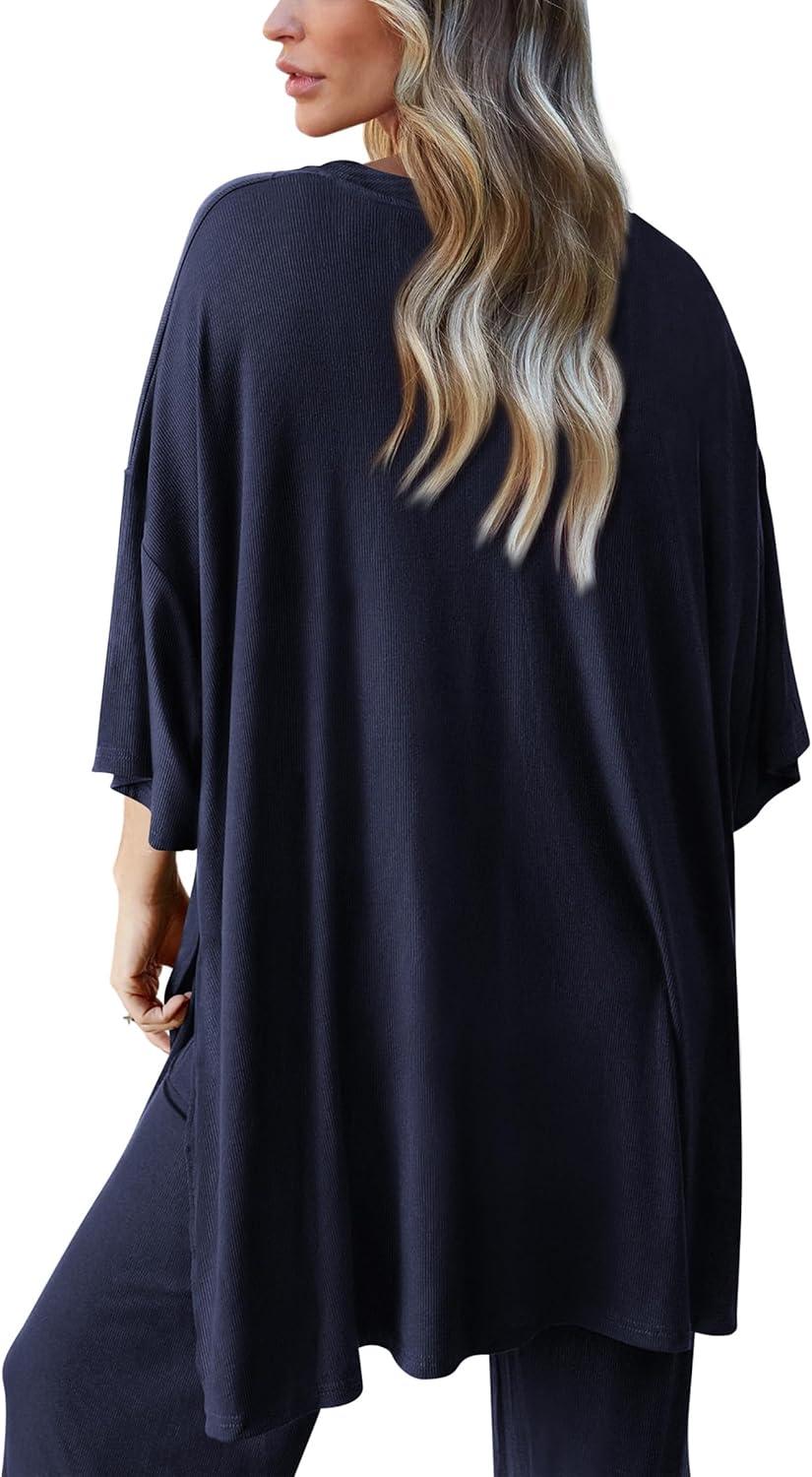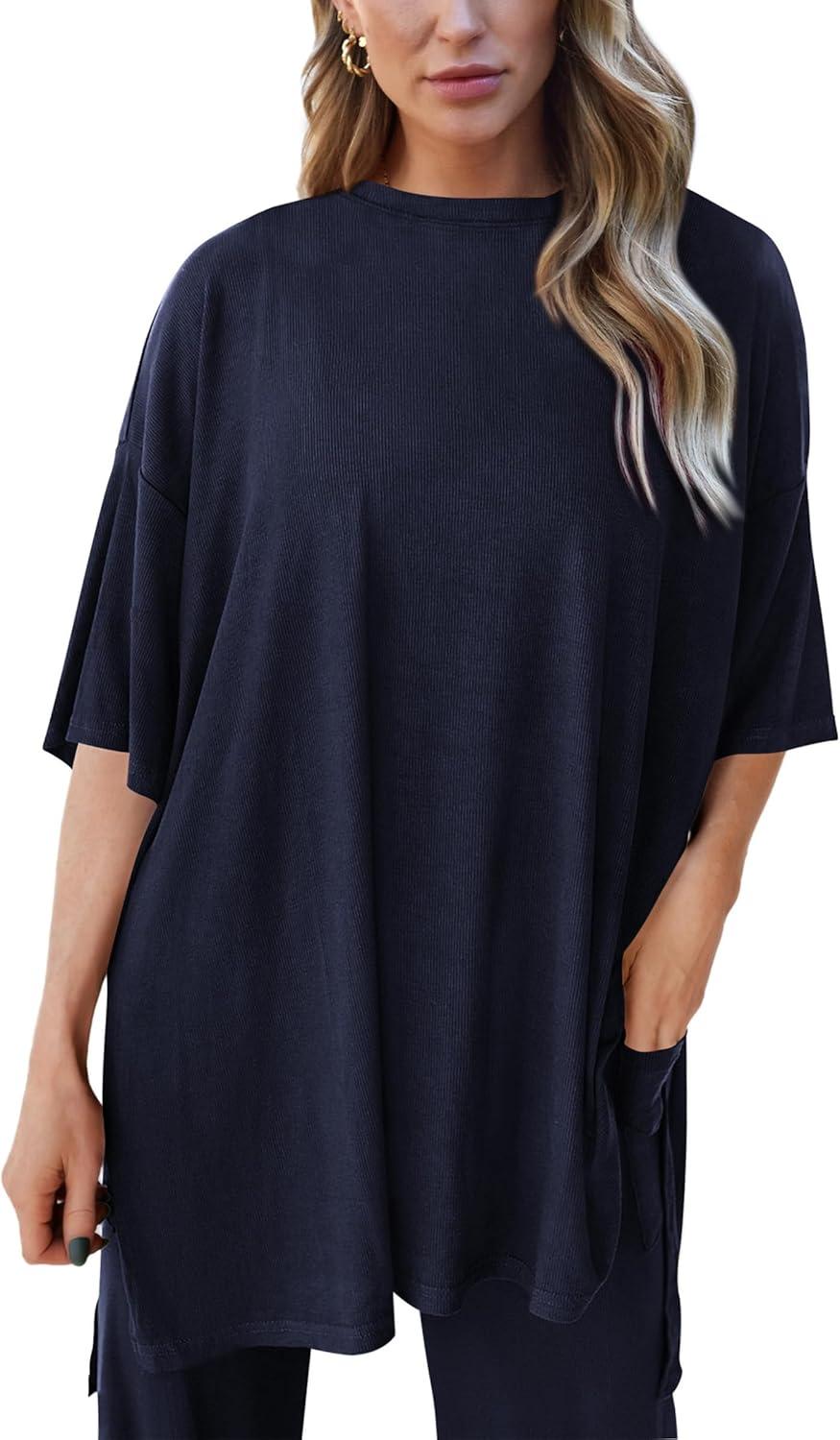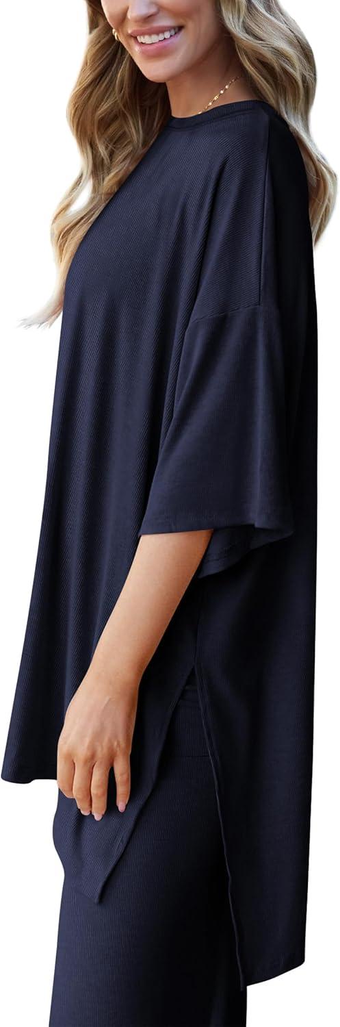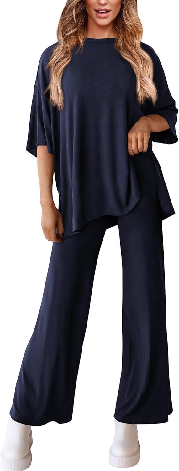 PRETTYGARDEN Two Piece Sets For Women Summer Fashion Lounge Matching Set 2025 Travel Vacation Airport Outfits Clothing(Navy)