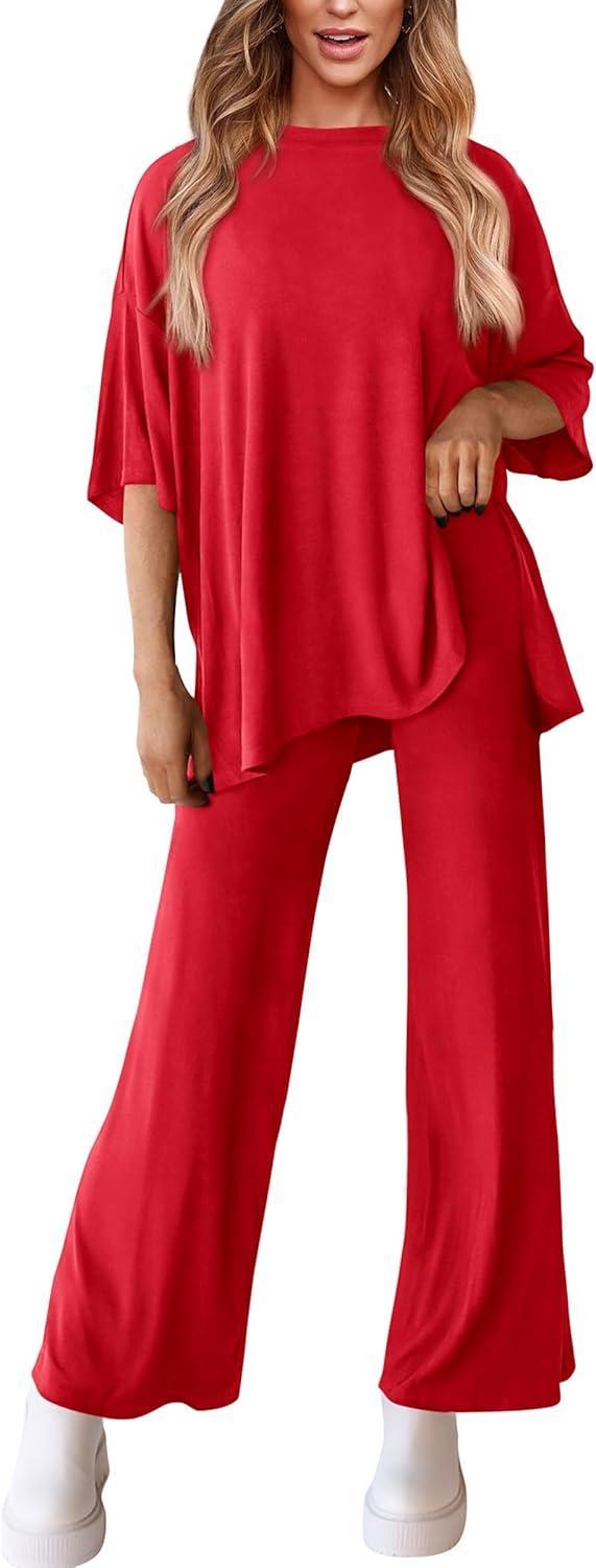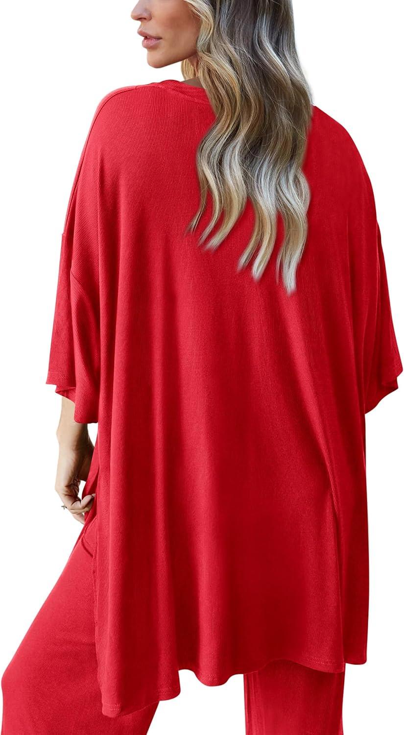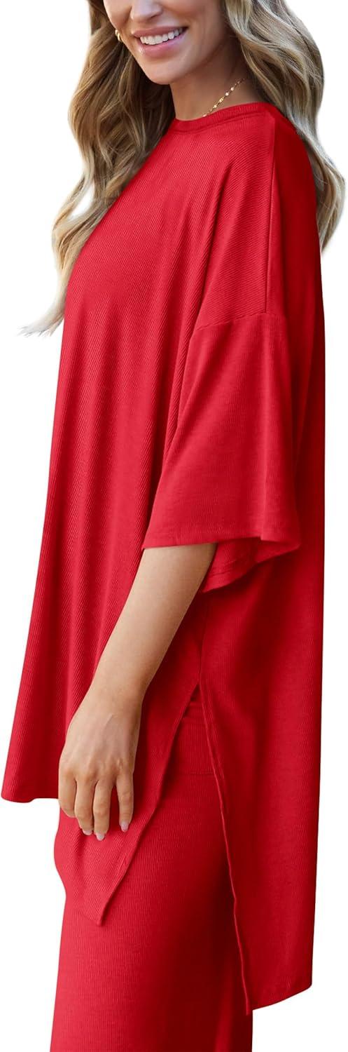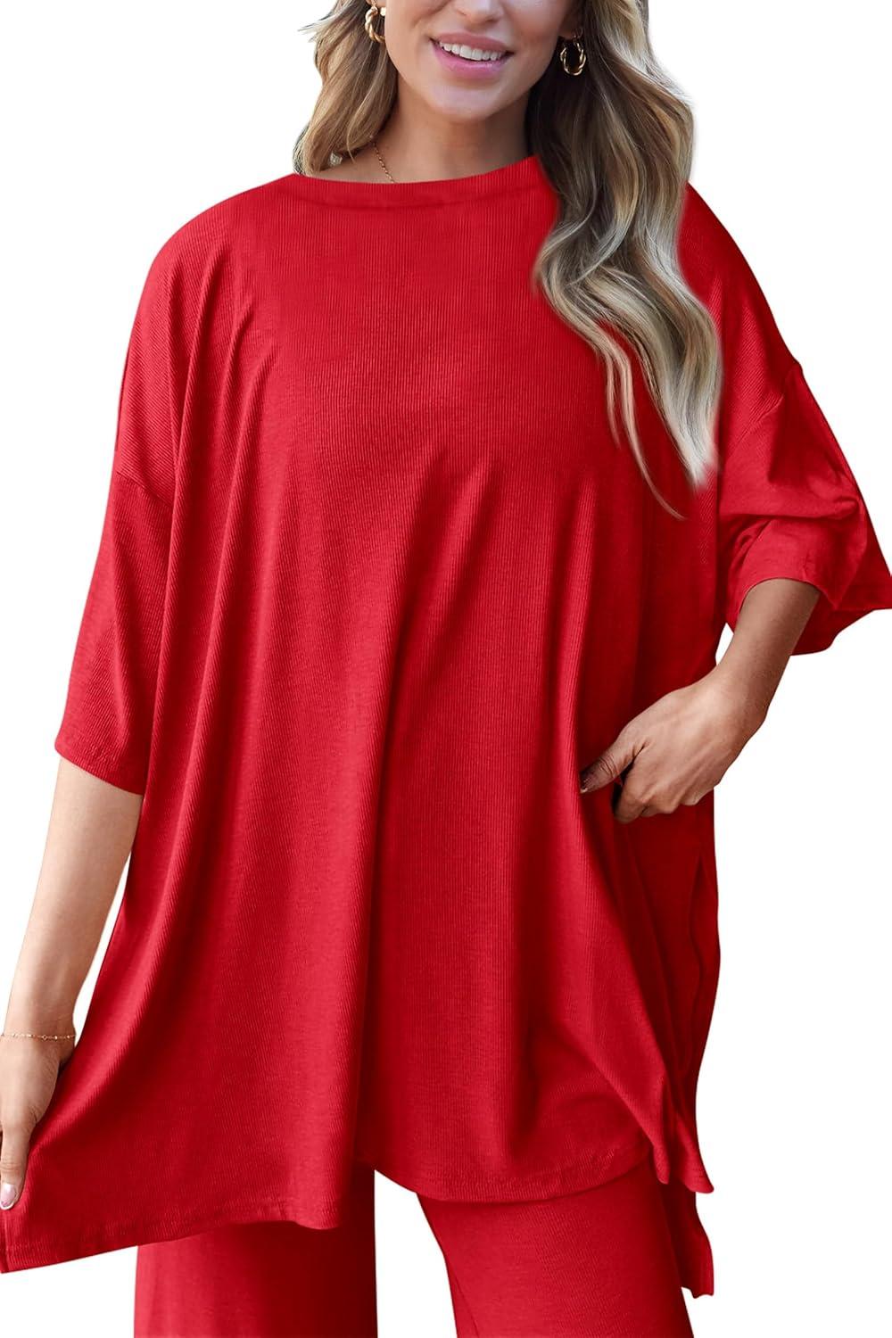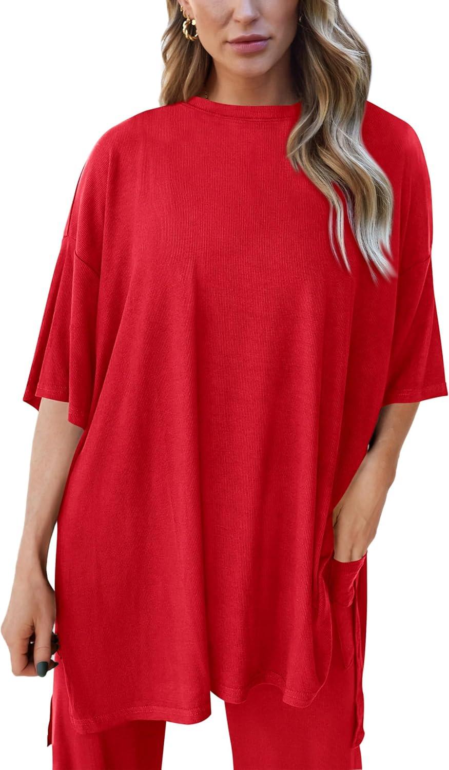 PRETTYGARDEN Two Piece Sets For Women Summer Fashion Lounge Matching Set 2025 Travel Vacation Airport Outfits Clothing(Red)