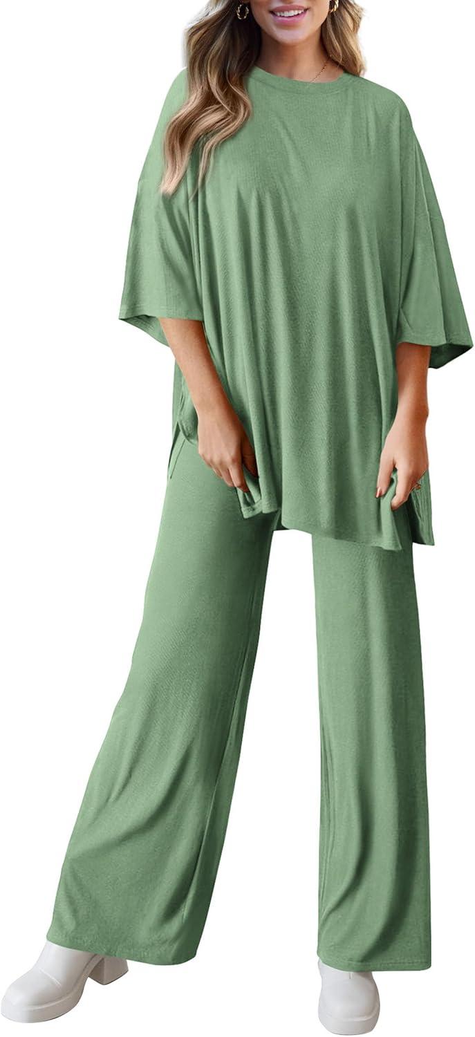 PRETTYGARDEN Two Piece Sets for Women Summer Fashion Lounge Matching Set 2026 Spring Travel Vacation Airport Outfits Clothing(Bean Green)