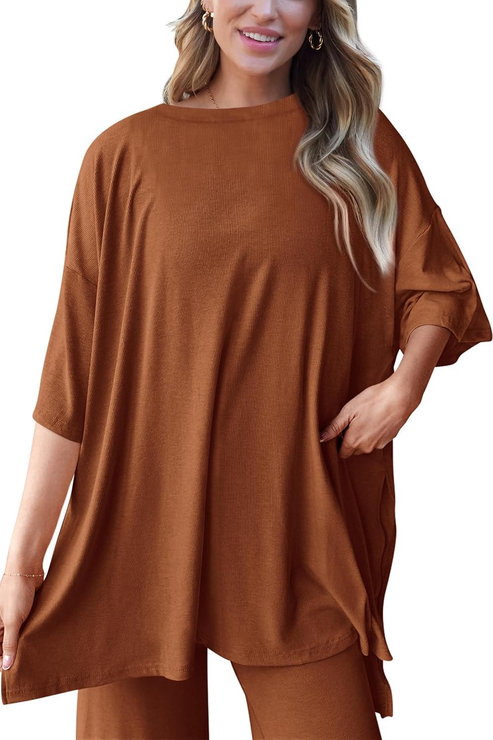 PRETTYGARDEN Two Piece Sets for Women Summer Fashion Lounge Matching Set 2026 Spring Travel Vacation Airport Outfits Clothing(Brick Red)