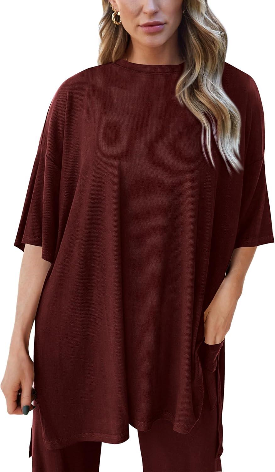 PRETTYGARDEN Two Piece Sets for Women Summer Fashion Lounge Matching Set 2026 Spring Travel Vacation Airport Outfits Clothing(Wine Red)