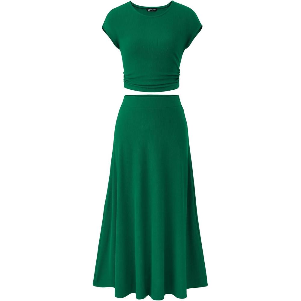PRETTYGARDEN Two Piece Skirt Set for Women 2025 Summer Spring Dressy Casual Knit Travel Vacation Matching Lounge Outfits(Green)