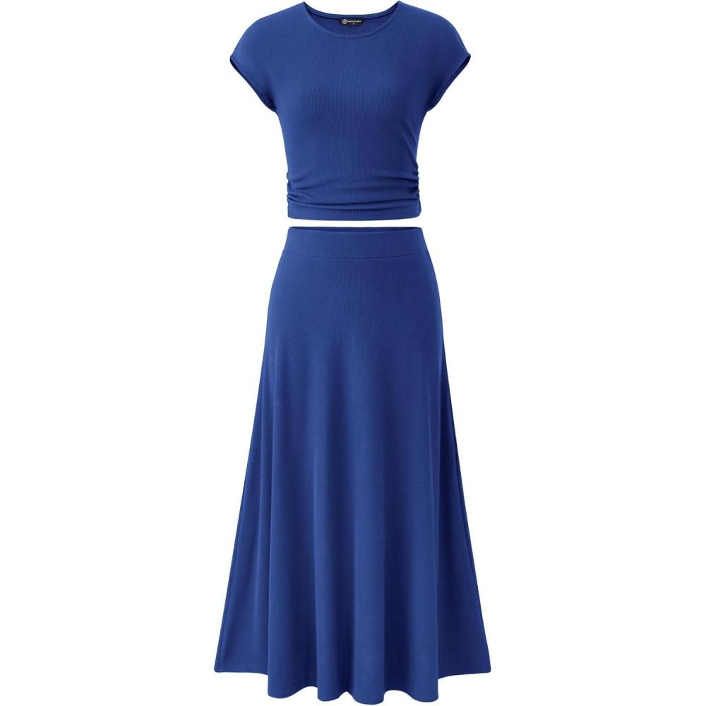 PRETTYGARDEN Two Piece Skirt Set for Women 2025 Summer Spring Dressy Casual Knit Travel Vacation Matching Lounge Outfits(Royal Blue)