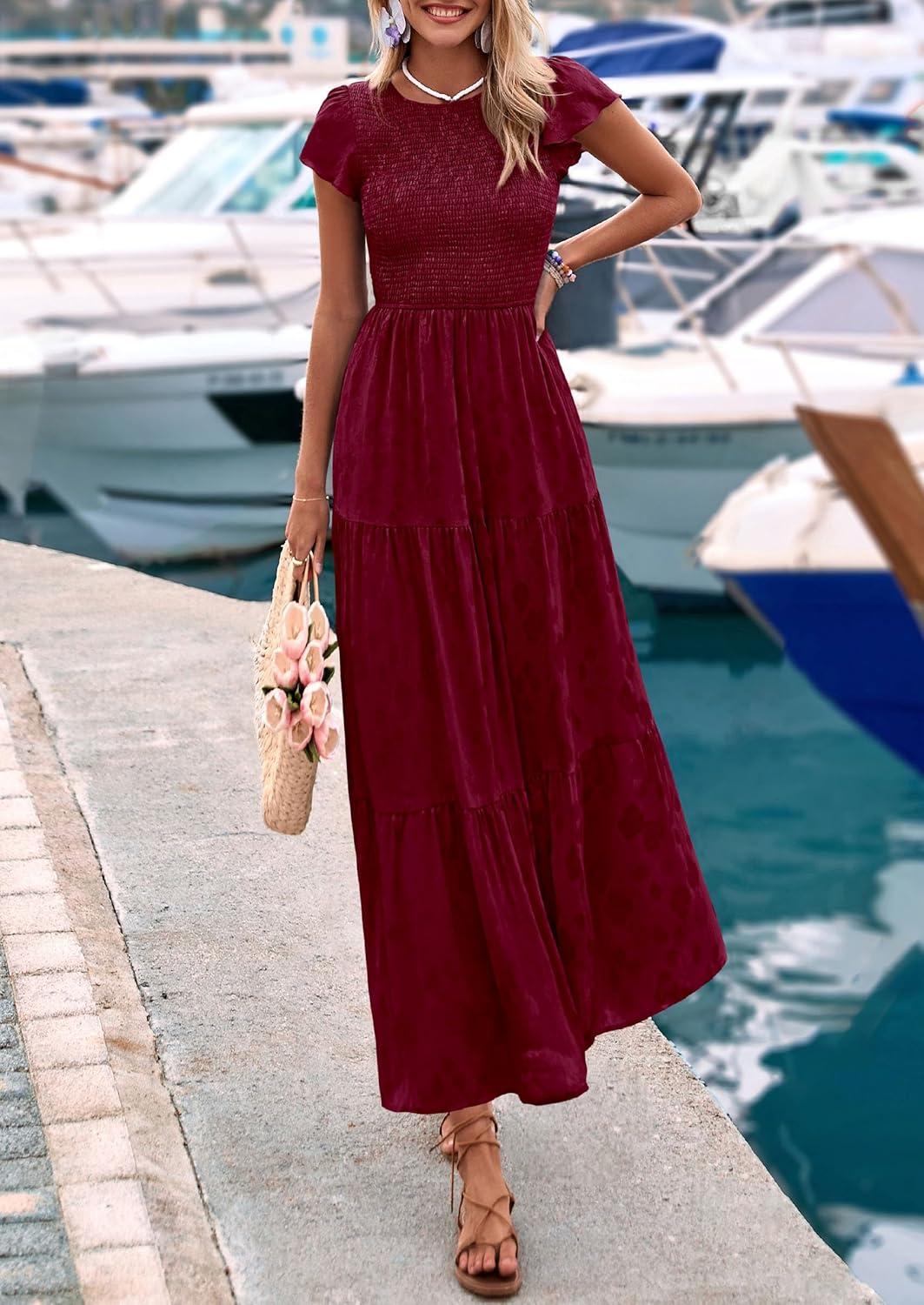 Be the first to review “PRETTYGARDEN Wedding Guest Dresses for Women 2025 Summer Floral Cap Sleeve Smocked A Line Long Elegant Party Boho Dress(Wine Red)”