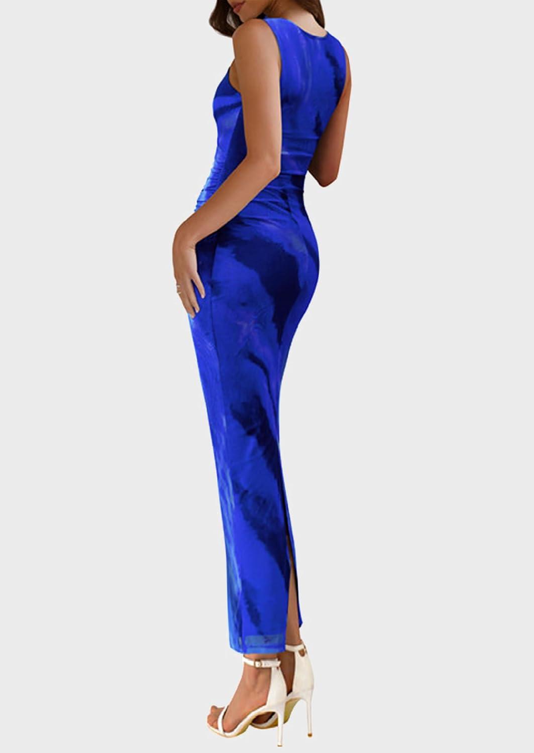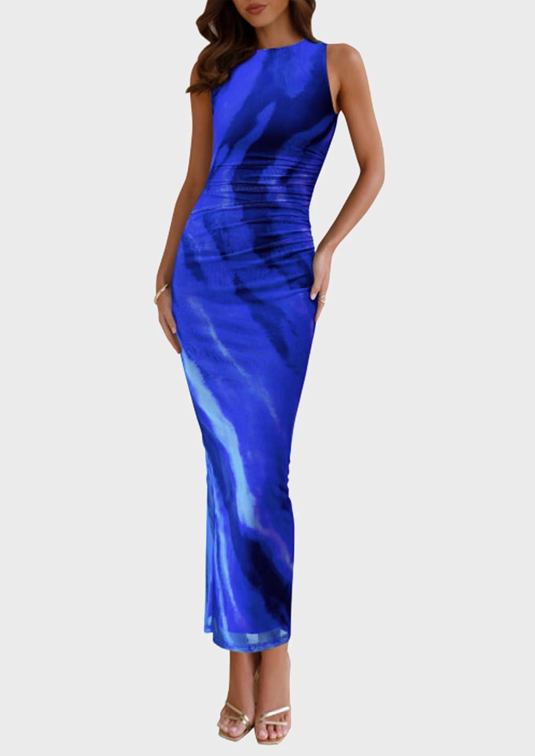 PRETTYGARDEN Wedding Guest Dresses for Women 2025 Summer Spring Floral Bodycon Sleeveless Mesh Maxi Long Dress(Blue Watercolour)