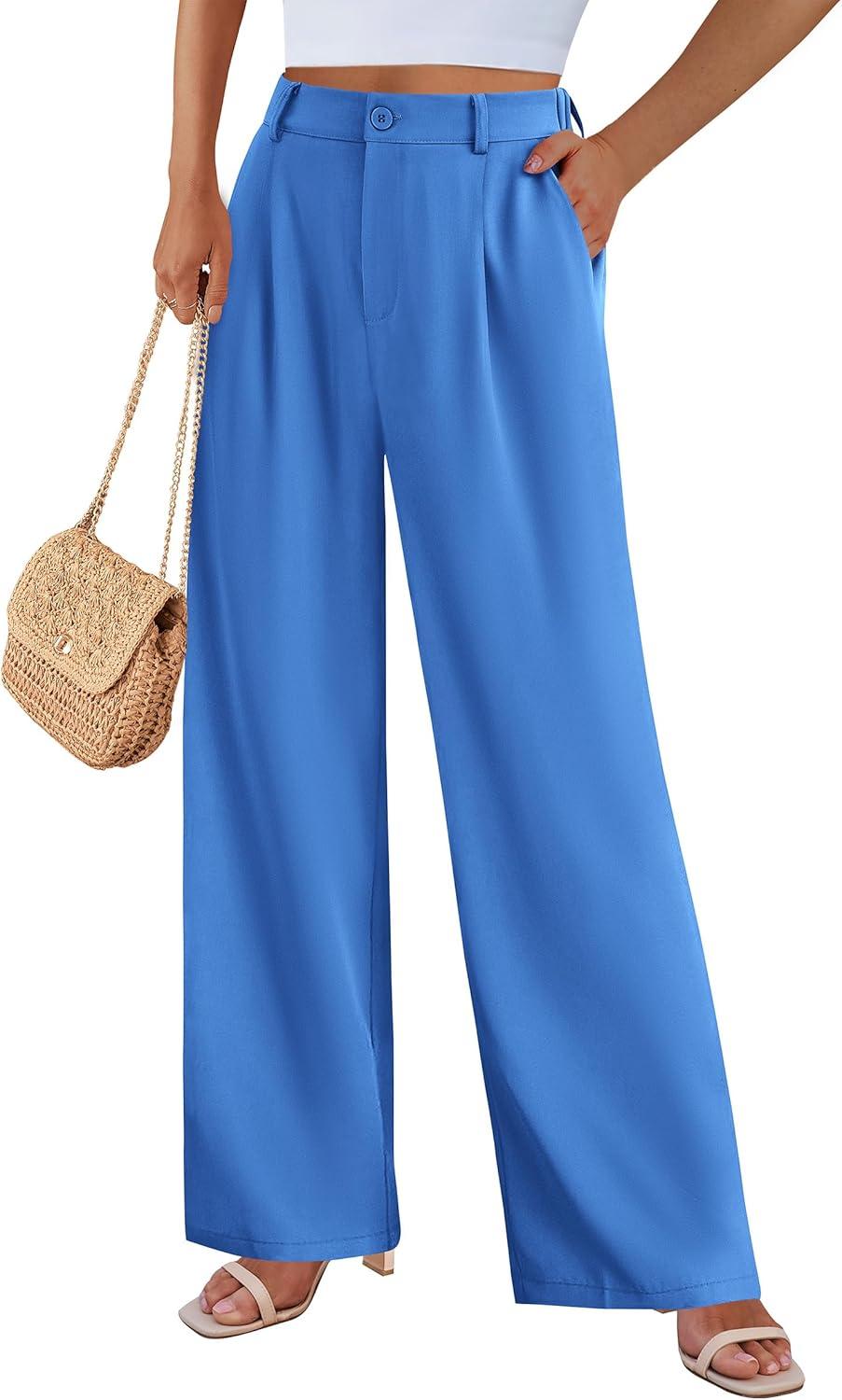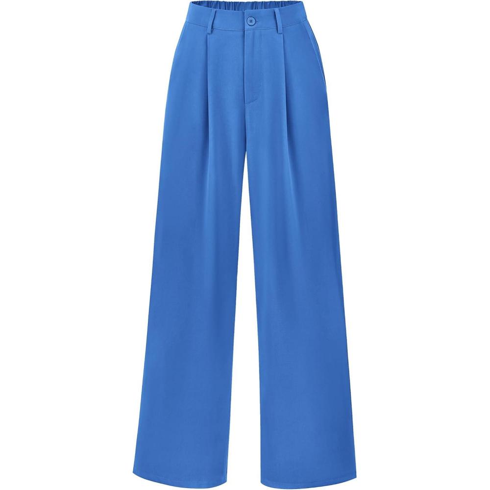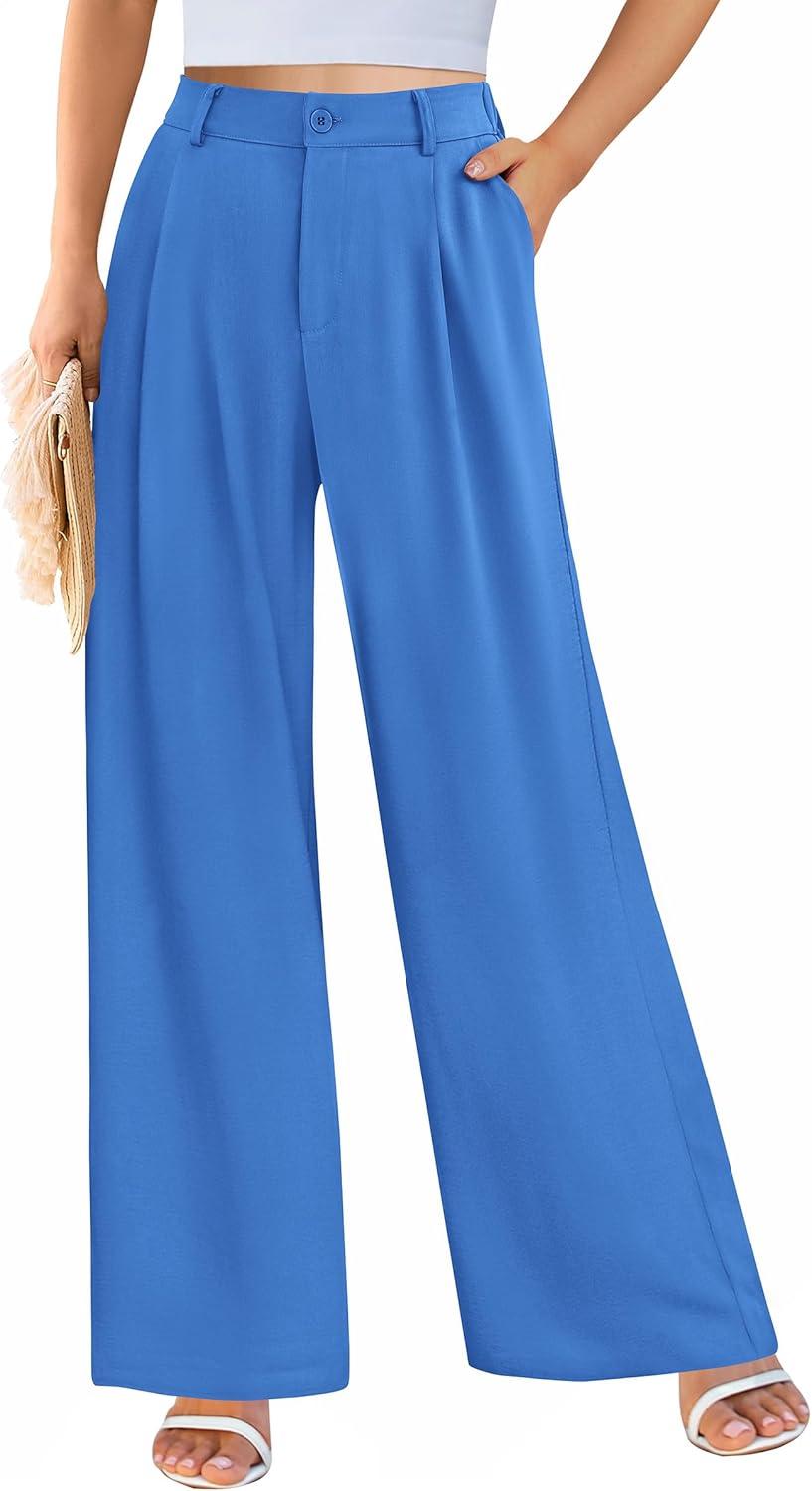PRETTYGARDEN Wide Leg Pants for Women Trendy 2025 Fall High Waisted Business Casual Outfits Work Pant Trousers(Blue)