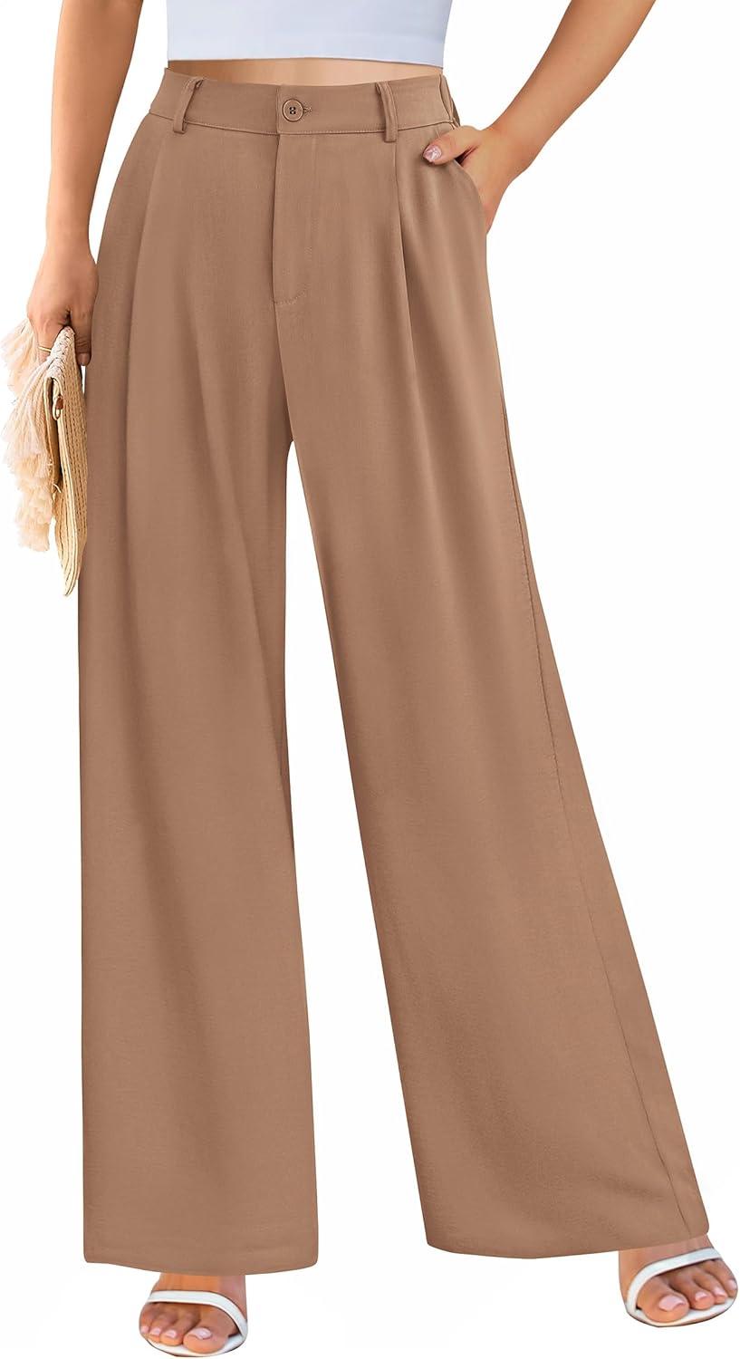 PRETTYGARDEN Wide Leg Pants for Women Trendy 2025 Fall High Waisted Business Casual Outfits Work Pant Trousers(Khaki)