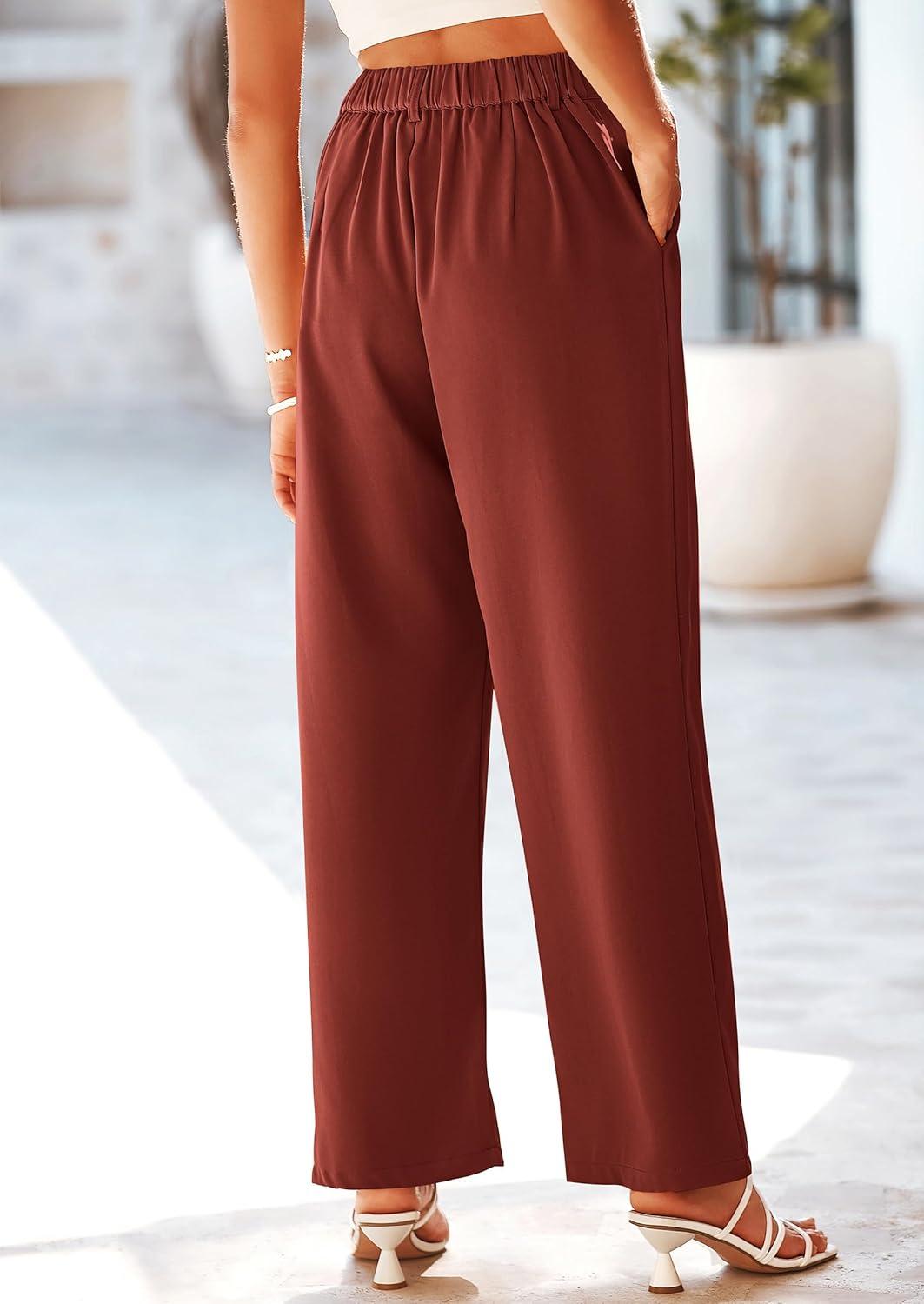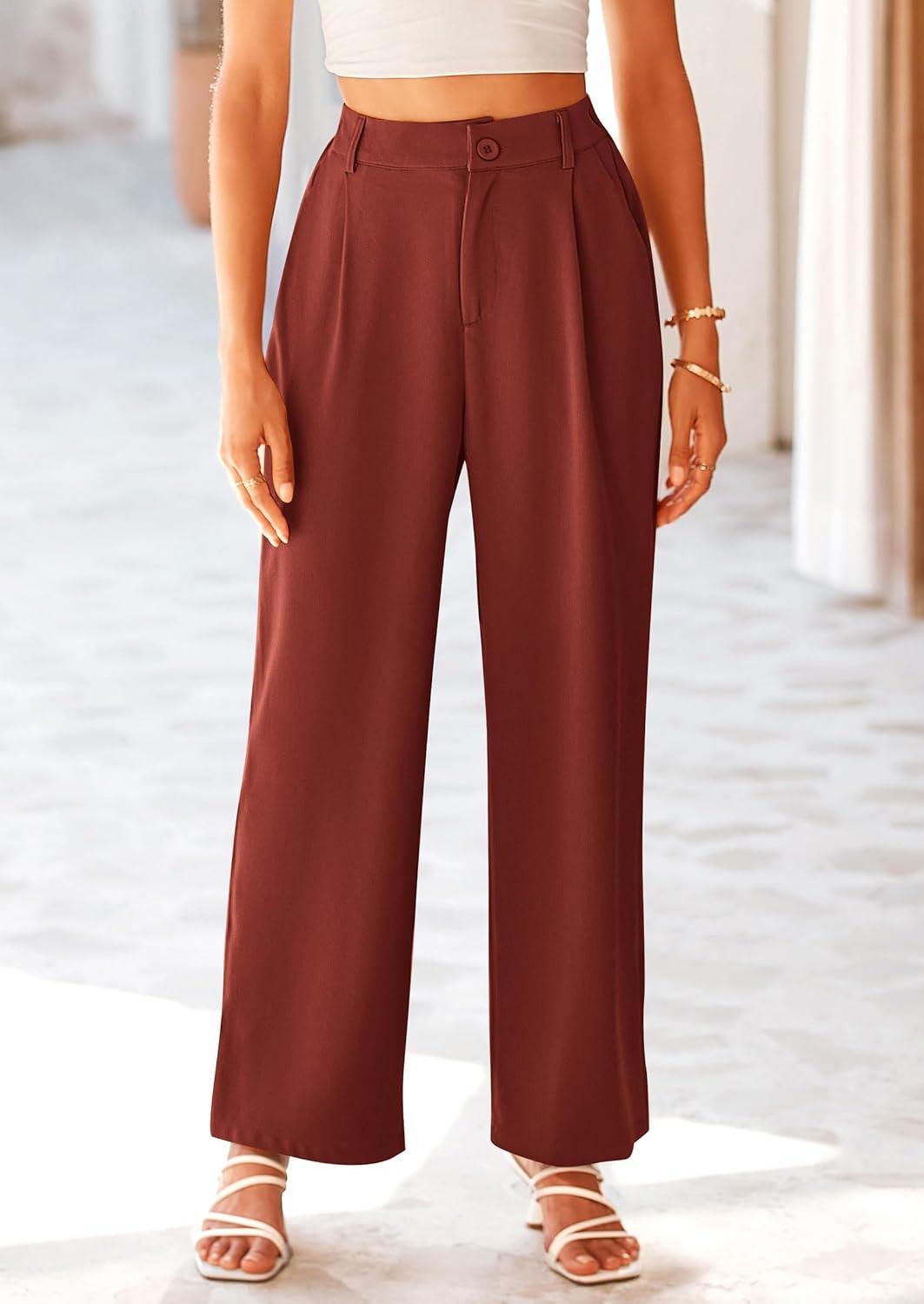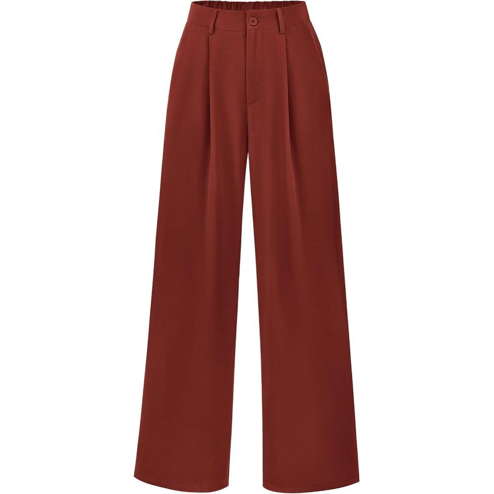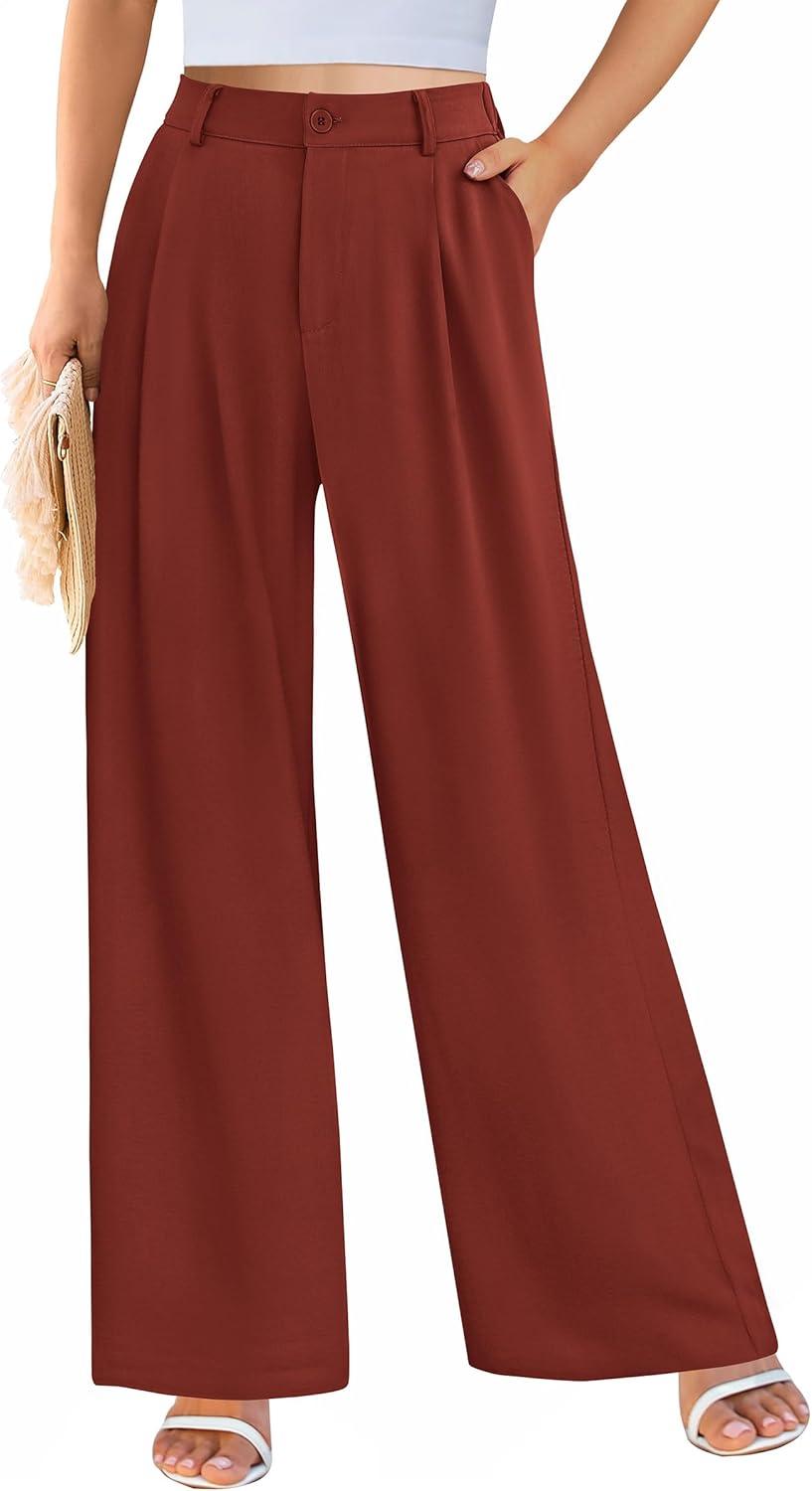 PRETTYGARDEN Wide Leg Pants for Women Trendy 2025 Fall High Waisted Business Casual Outfits Work Pant Trousers(Rust Red)