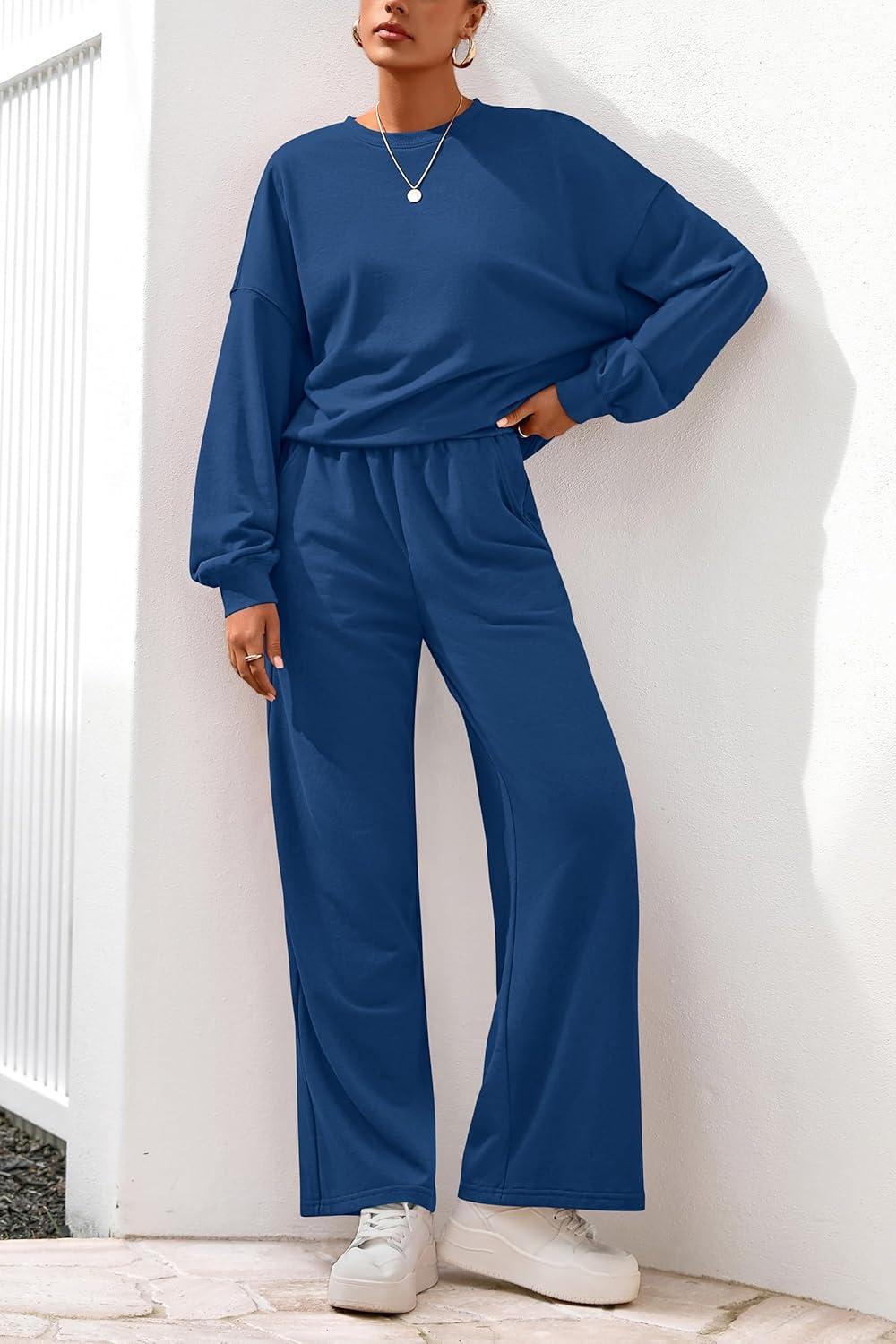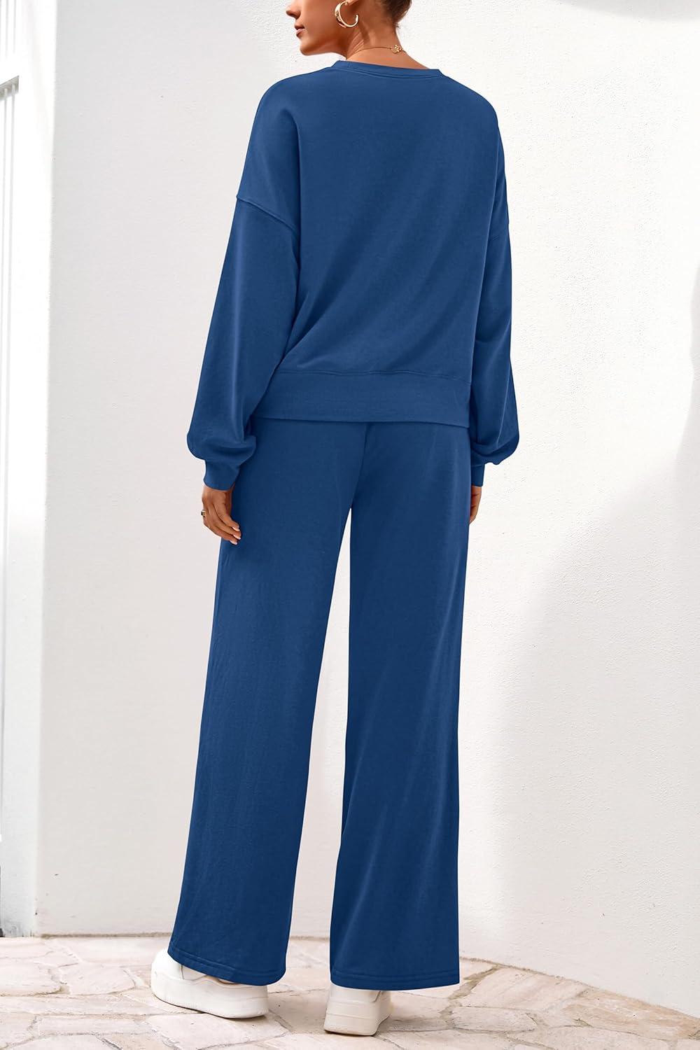 PRETTYGARDEN Women 2 Piece Outfits 2025 Fall Sweatsuits Crewneck Sweatshirt Wide Leg Sweatpants Lounge Sets Tracksuit(Royal Blue)