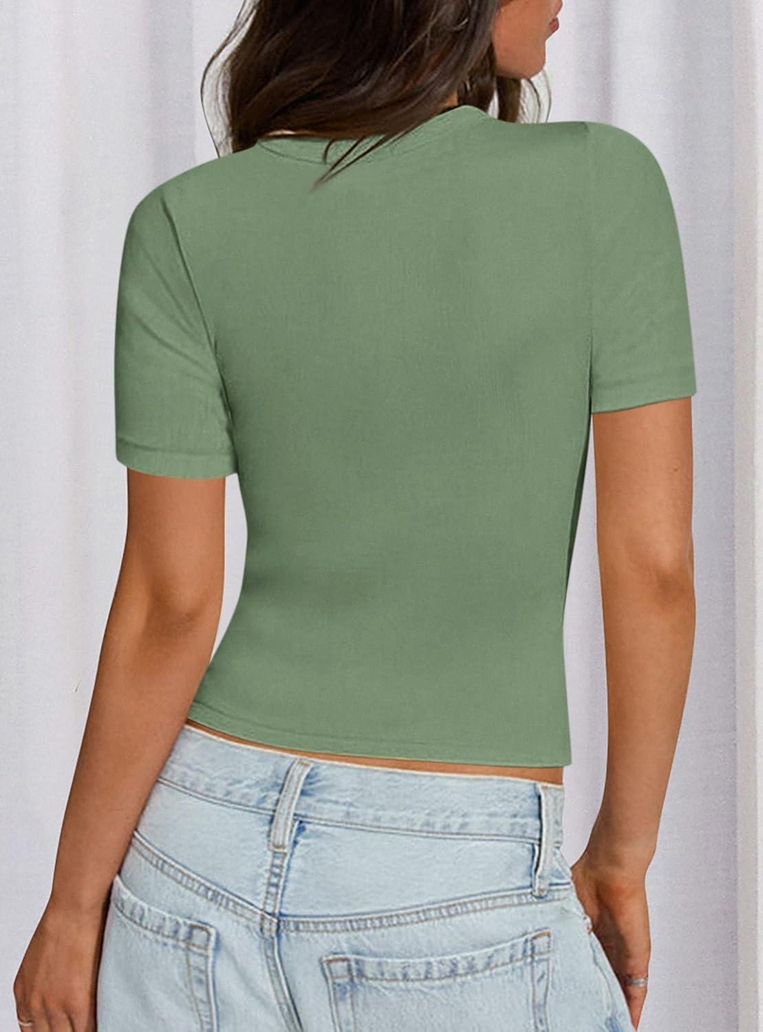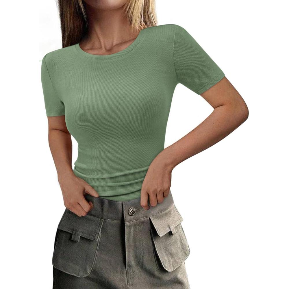 PRETTYGARDEN Women 2025 Summer Crew Neck Short Sleeve Tops Ribbed Knit Slim Fit Fashion Basic Tee Shirts Casual Going Out Top(Green)