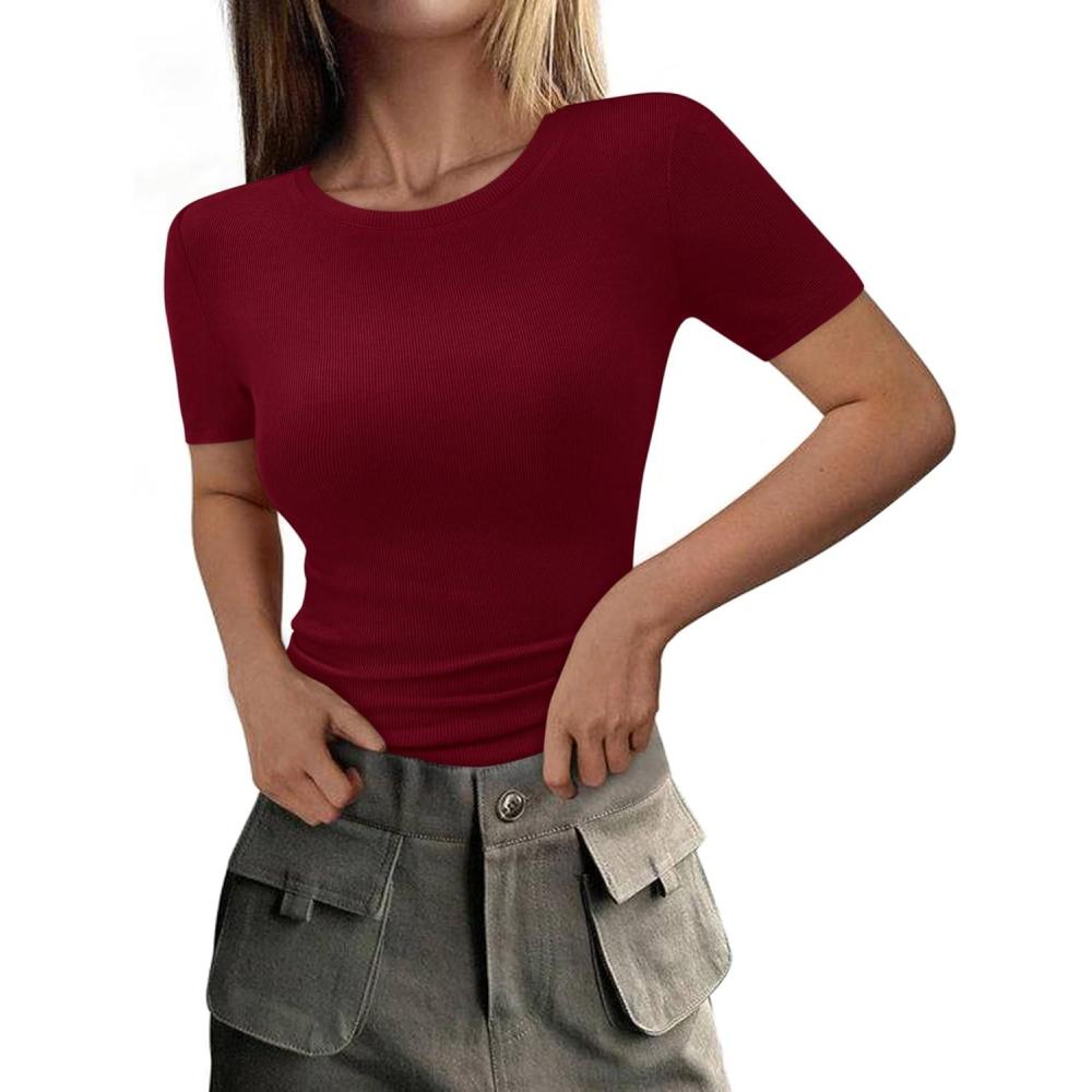 Be the first to review “PRETTYGARDEN Women 2025 Summer Crew Neck Short Sleeve Tops Ribbed Knit Slim Fit Fashion Basic Tee Shirts Casual Going Out Top(Wine Red)”