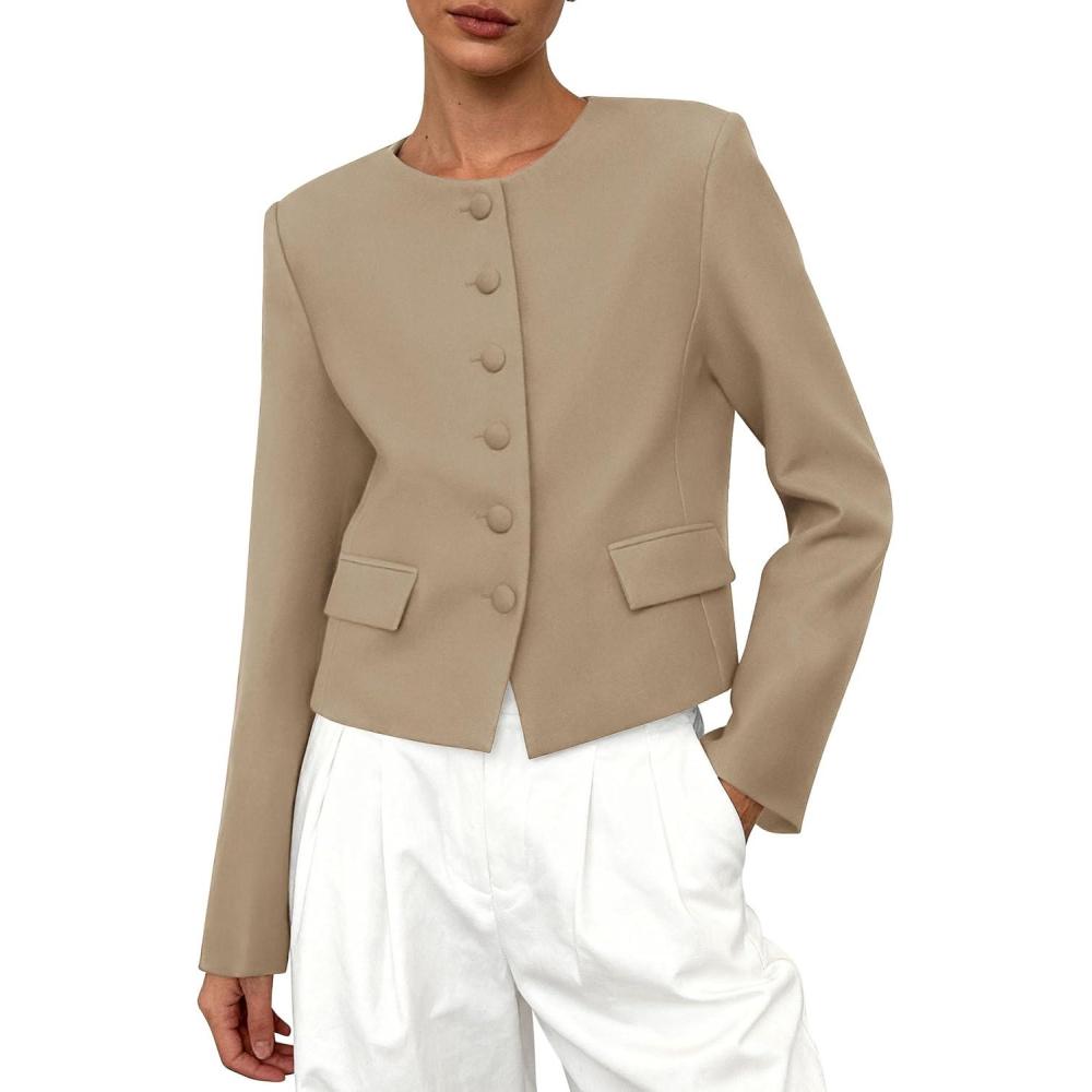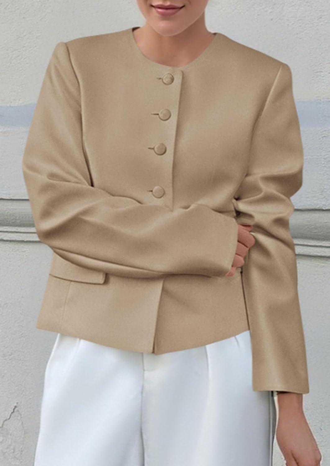 imagePRETTYGARDEN Women Blazers Business Casual Outfits 2025 Fall Fashion Long Sleeve Professional Office Work Suit Jacket ClothesLight Khaki