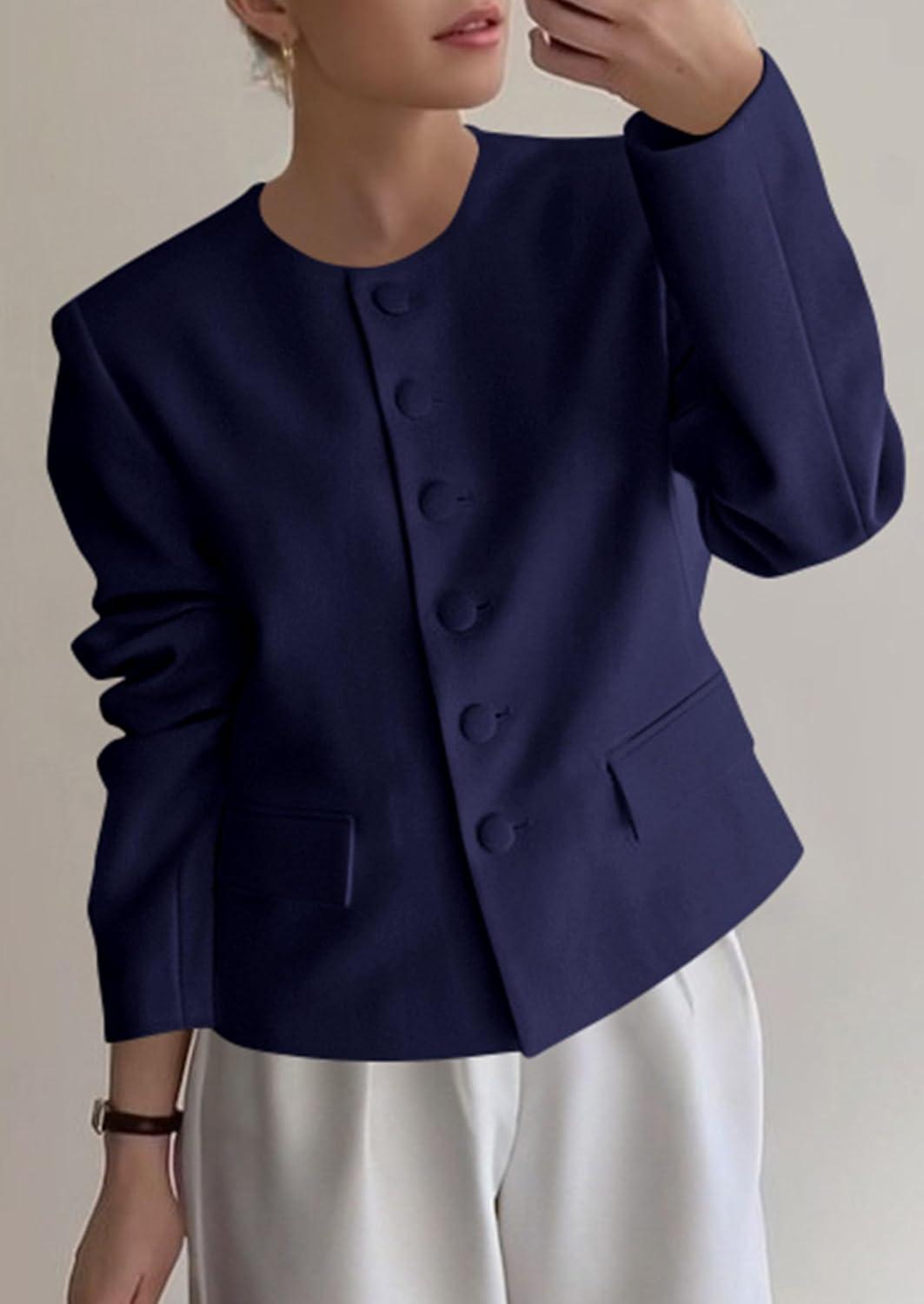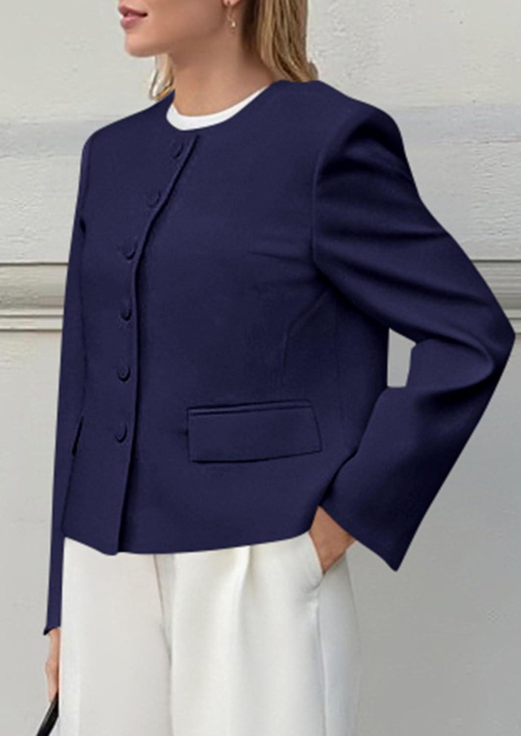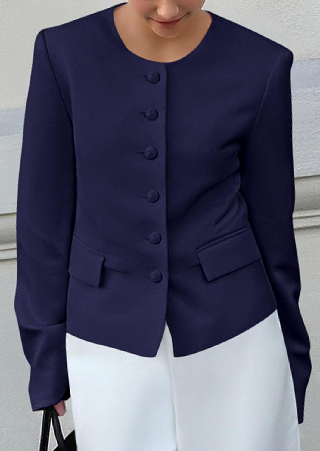 imagePRETTYGARDEN Women Blazers Business Casual Outfits 2025 Fall Fashion Long Sleeve Professional Office Work Suit Jacket ClothesNavy