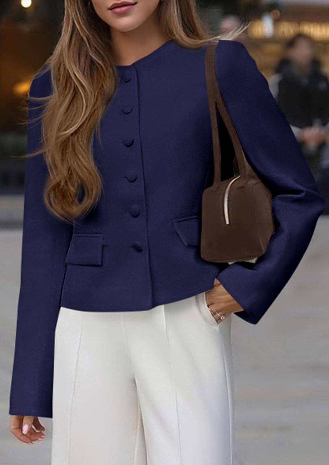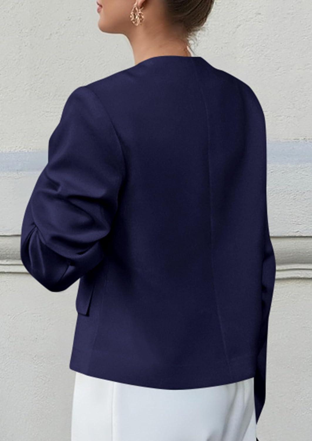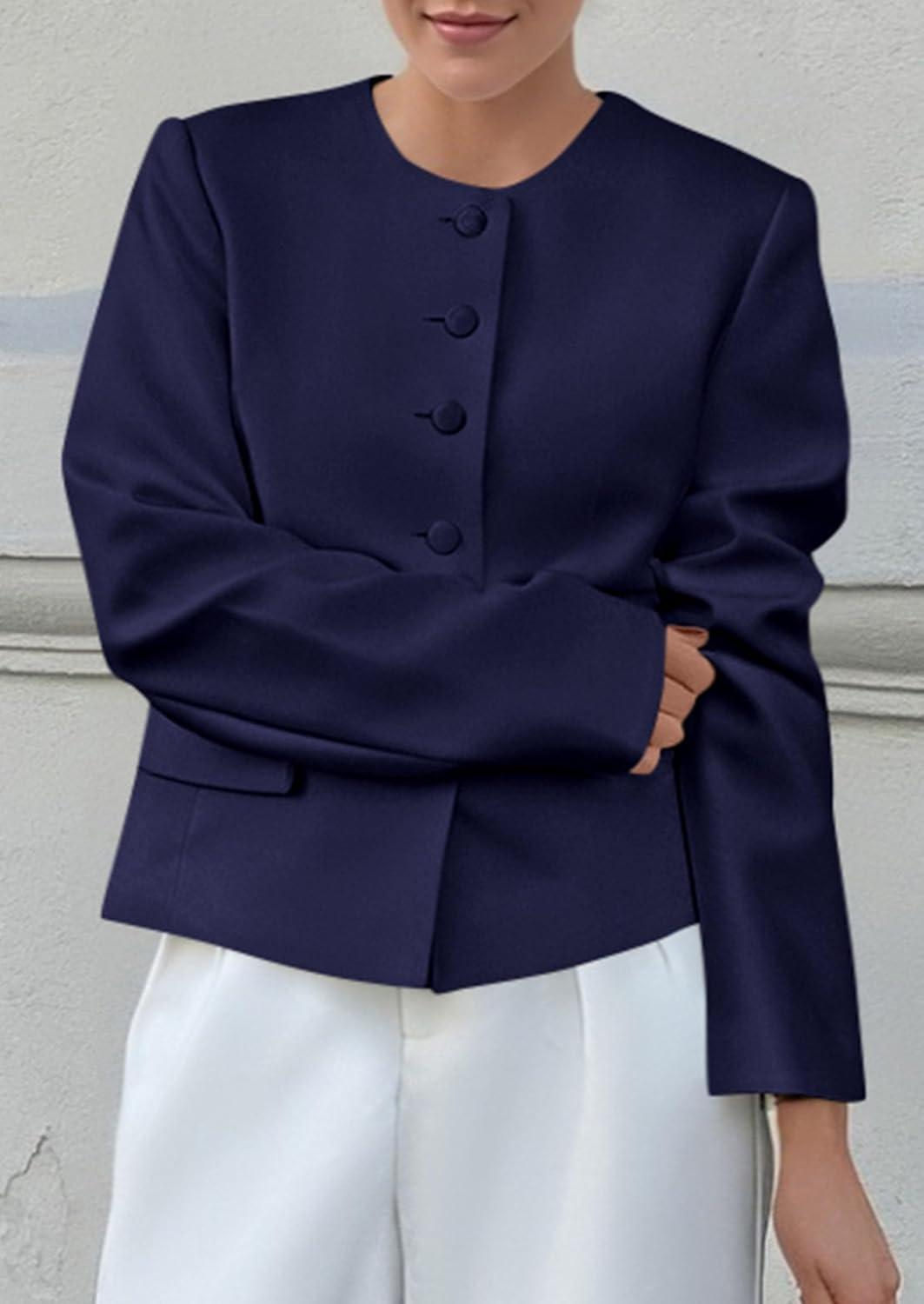 imagePRETTYGARDEN Women Blazers Business Casual Outfits 2025 Fall Fashion Long Sleeve Professional Office Work Suit Jacket ClothesNavy