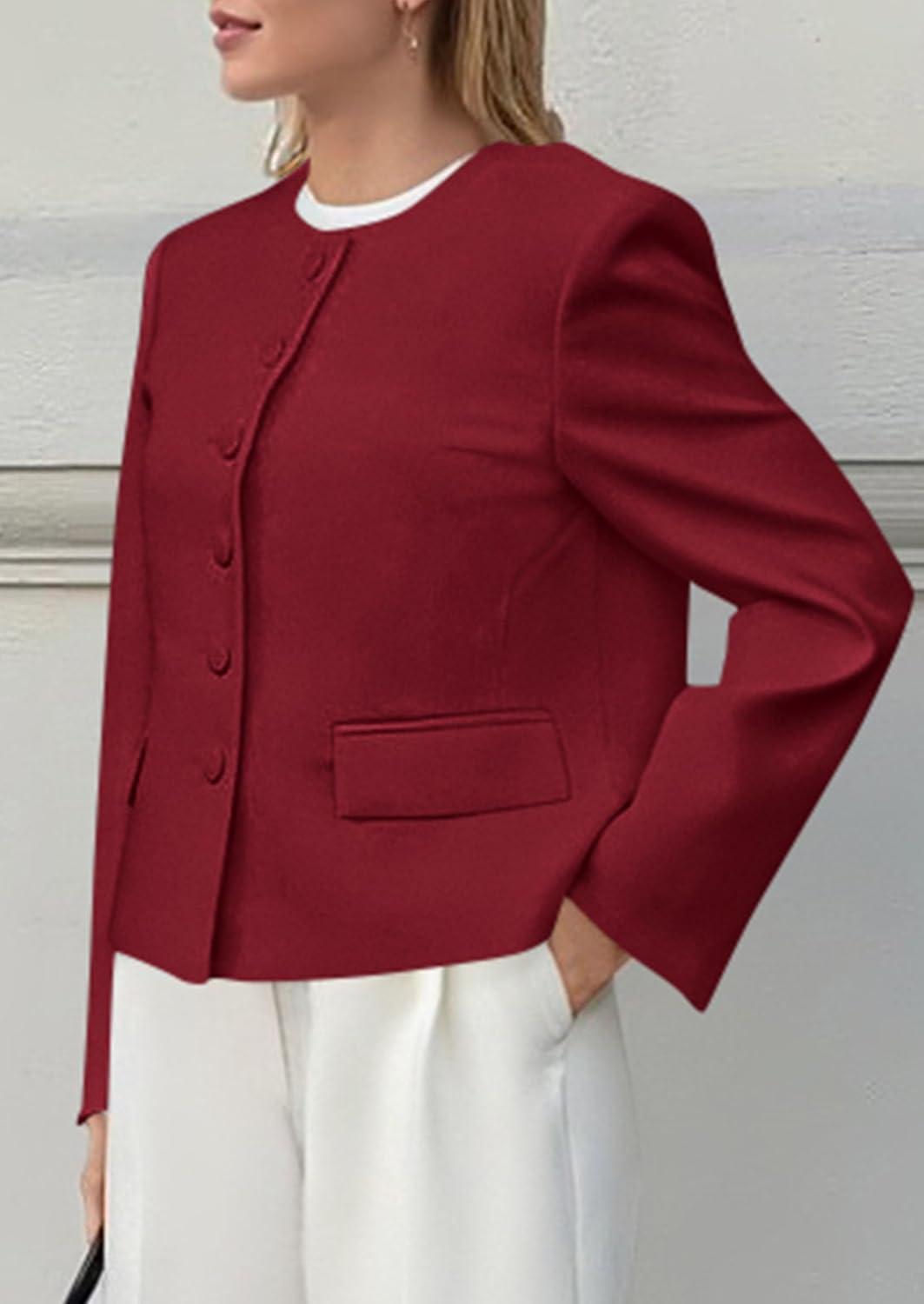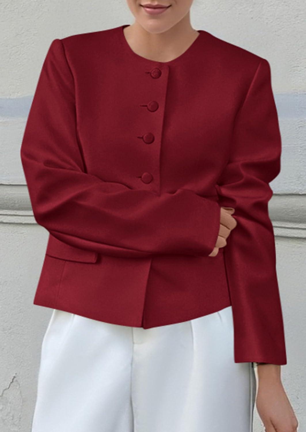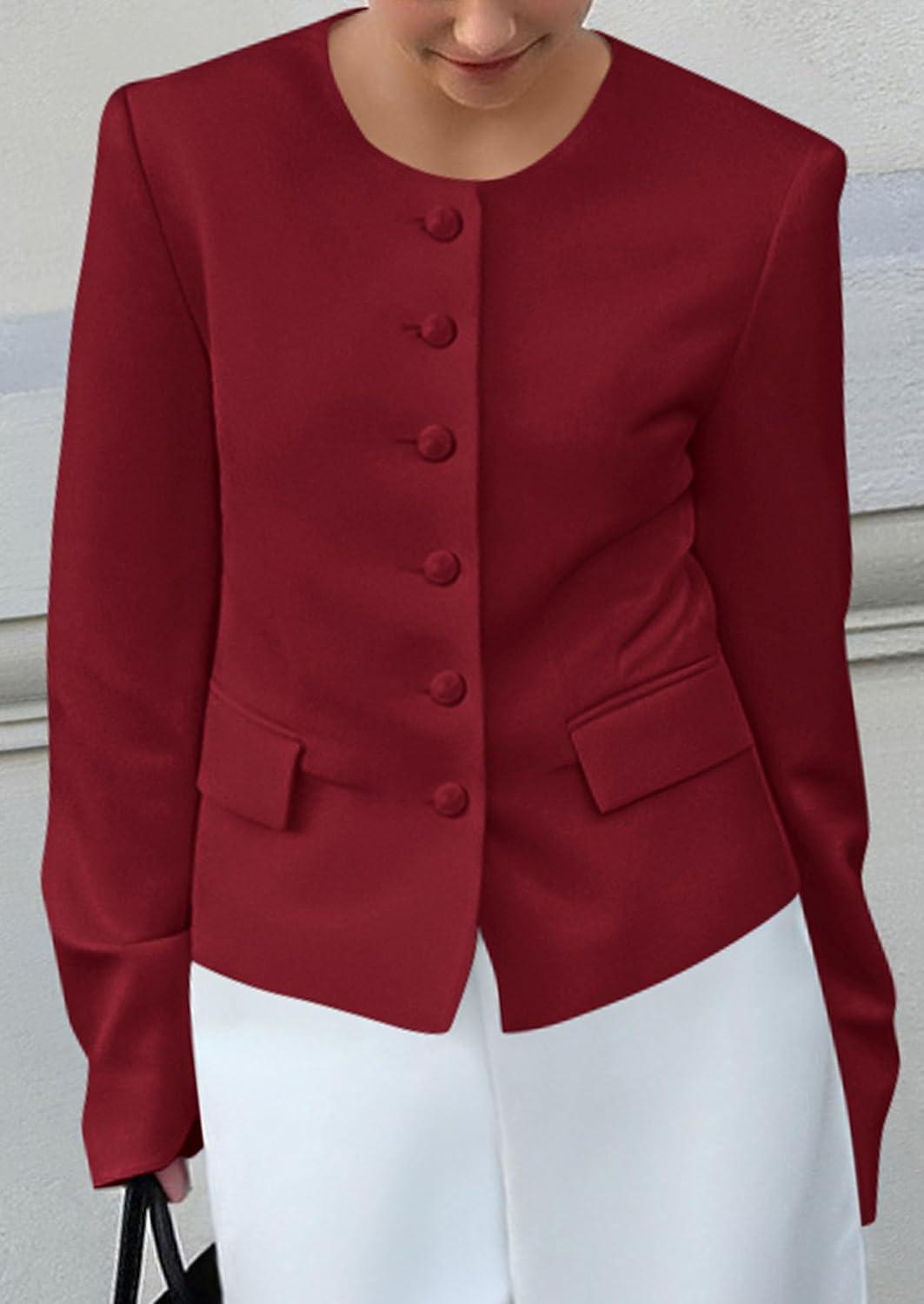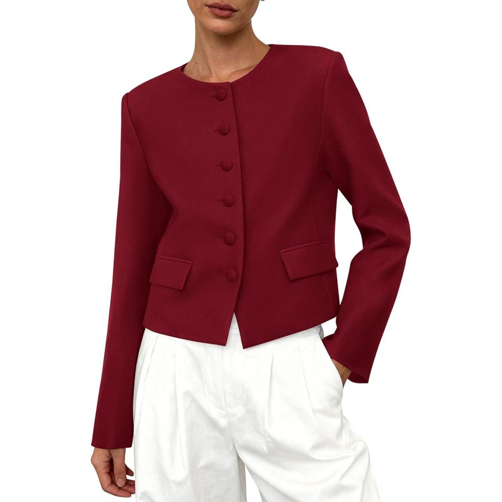 imagePRETTYGARDEN Women Blazers Business Casual Outfits 2025 Fall Fashion Long Sleeve Professional Office Work Suit Jacket ClothesWine Red
