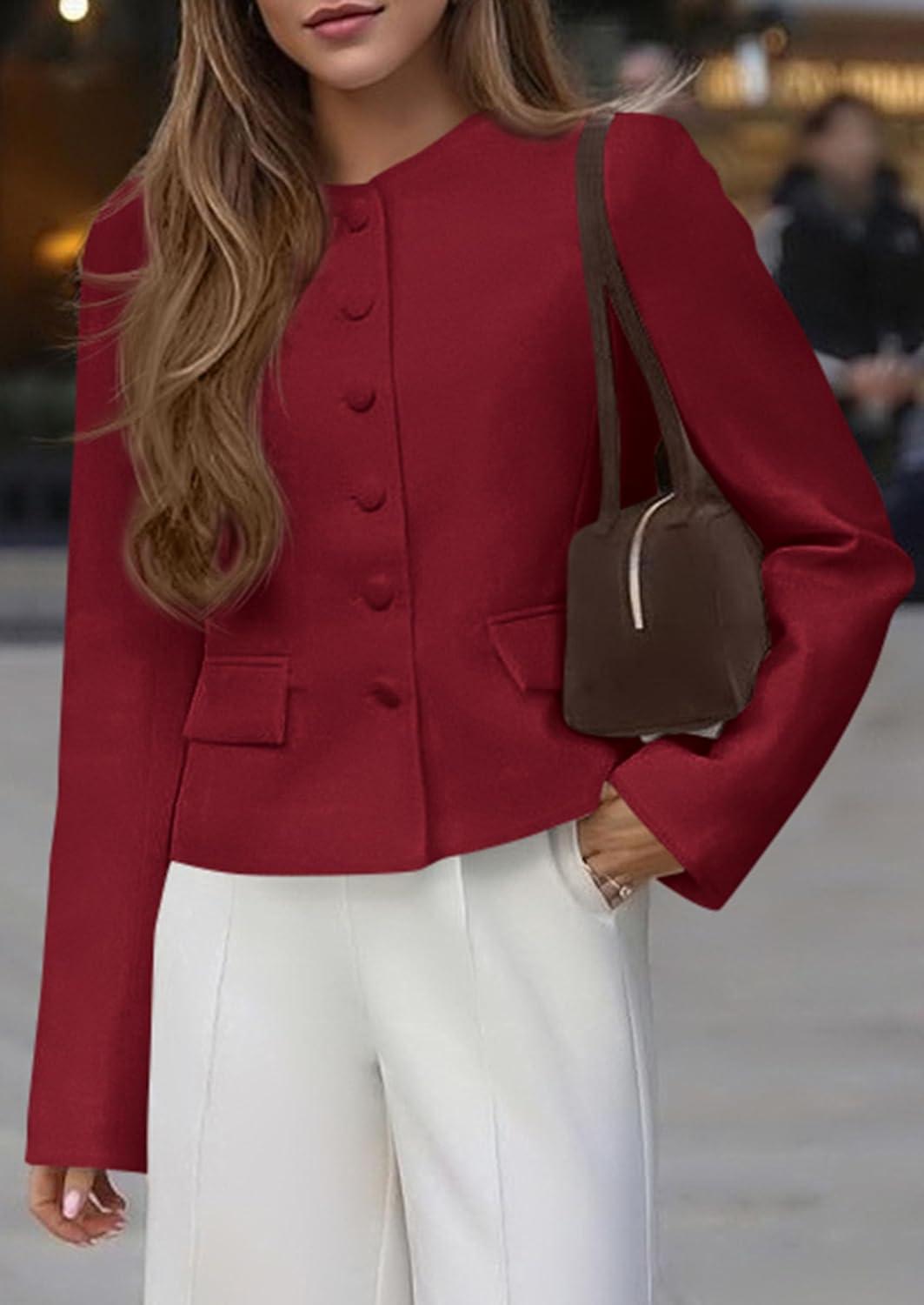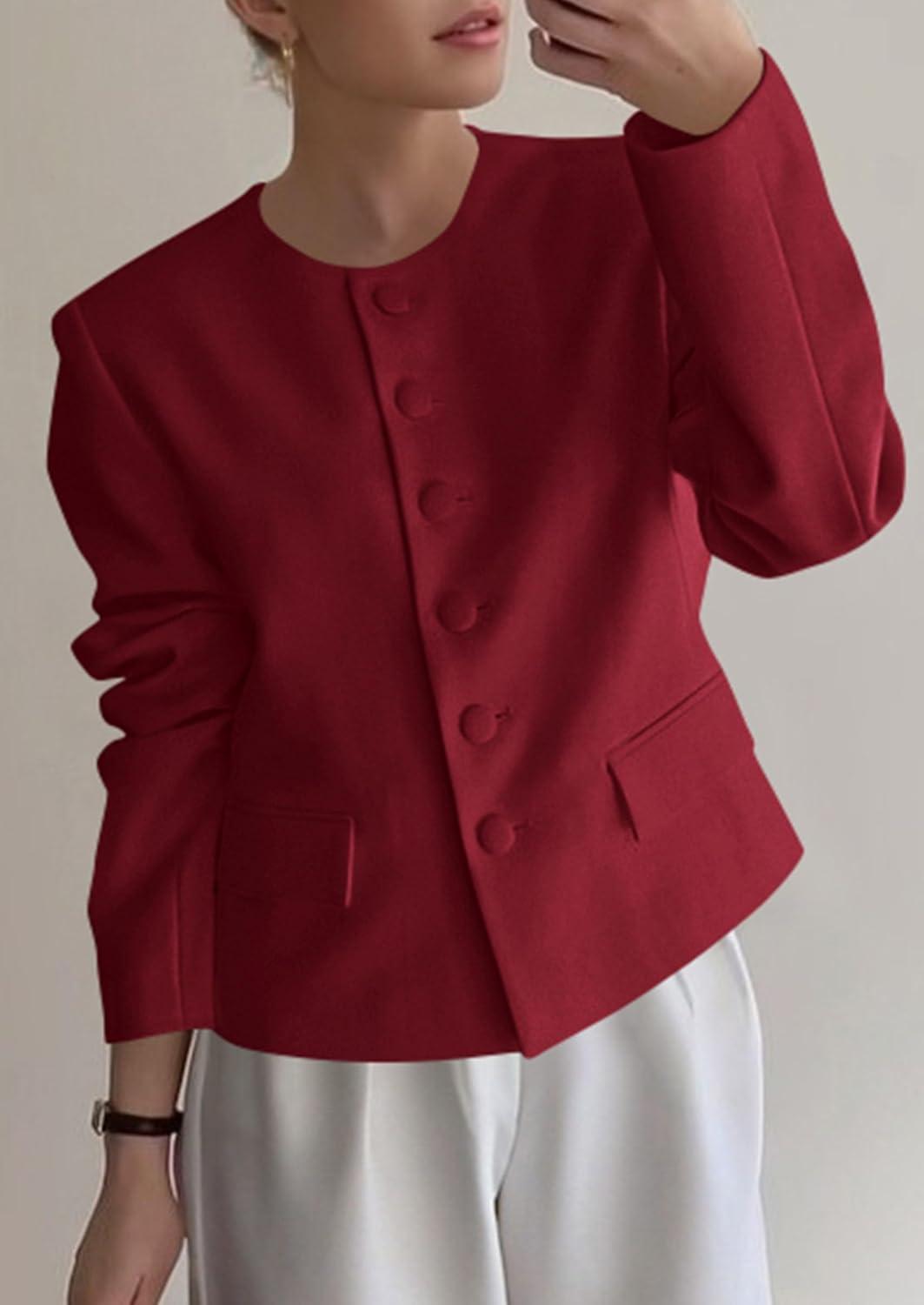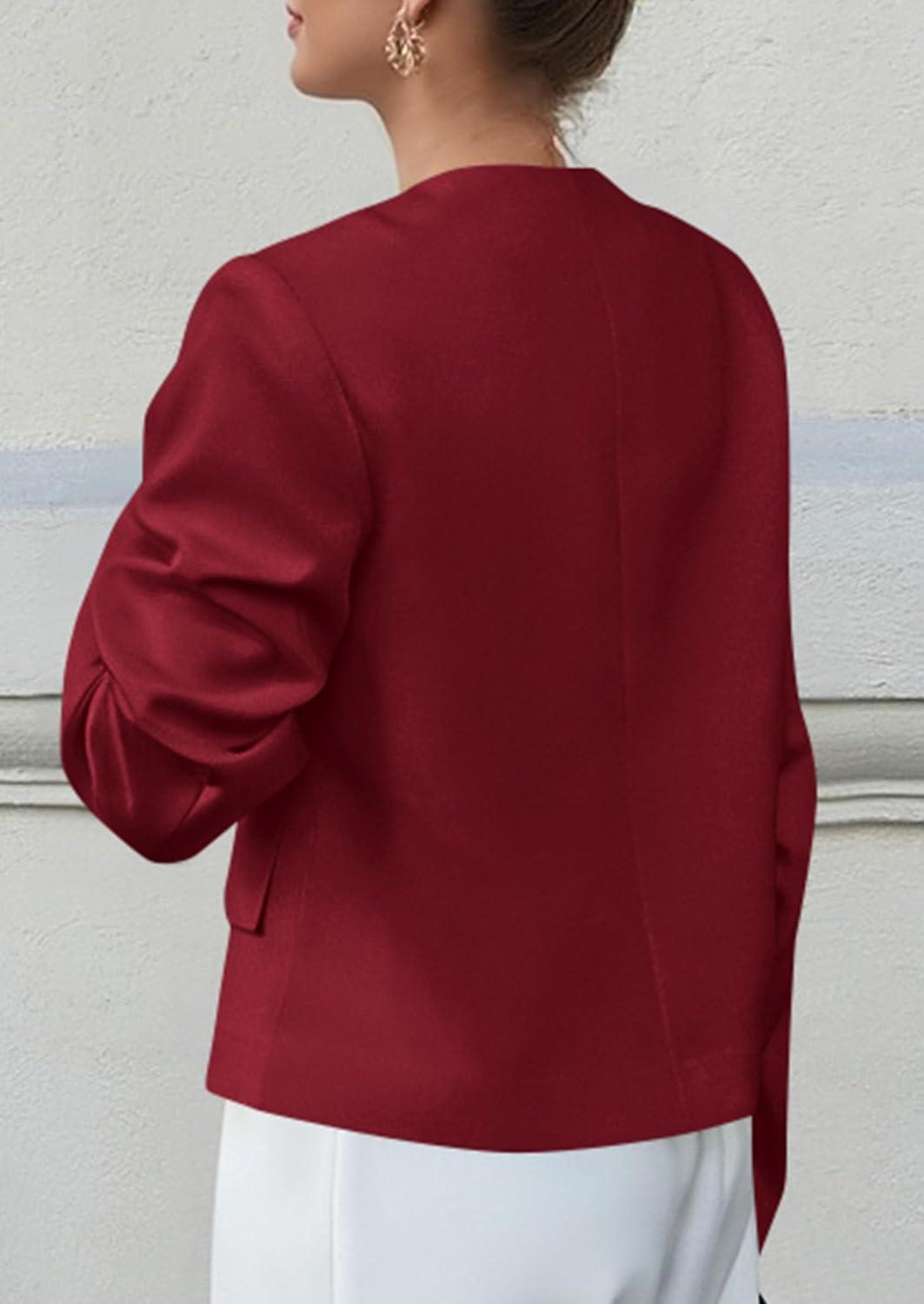 imagePRETTYGARDEN Women Blazers Business Casual Outfits 2025 Fall Fashion Long Sleeve Professional Office Work Suit Jacket ClothesWine Red