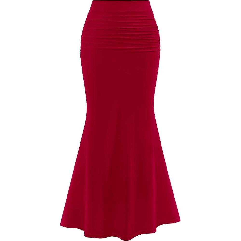 PRETTYGARDEN Women Bodycon Mermaid Skirt 2025 Spring Summer Casual Fitted Mesh High Waisted Ruched Maxi Long Going Out Outfit(Wine Red)