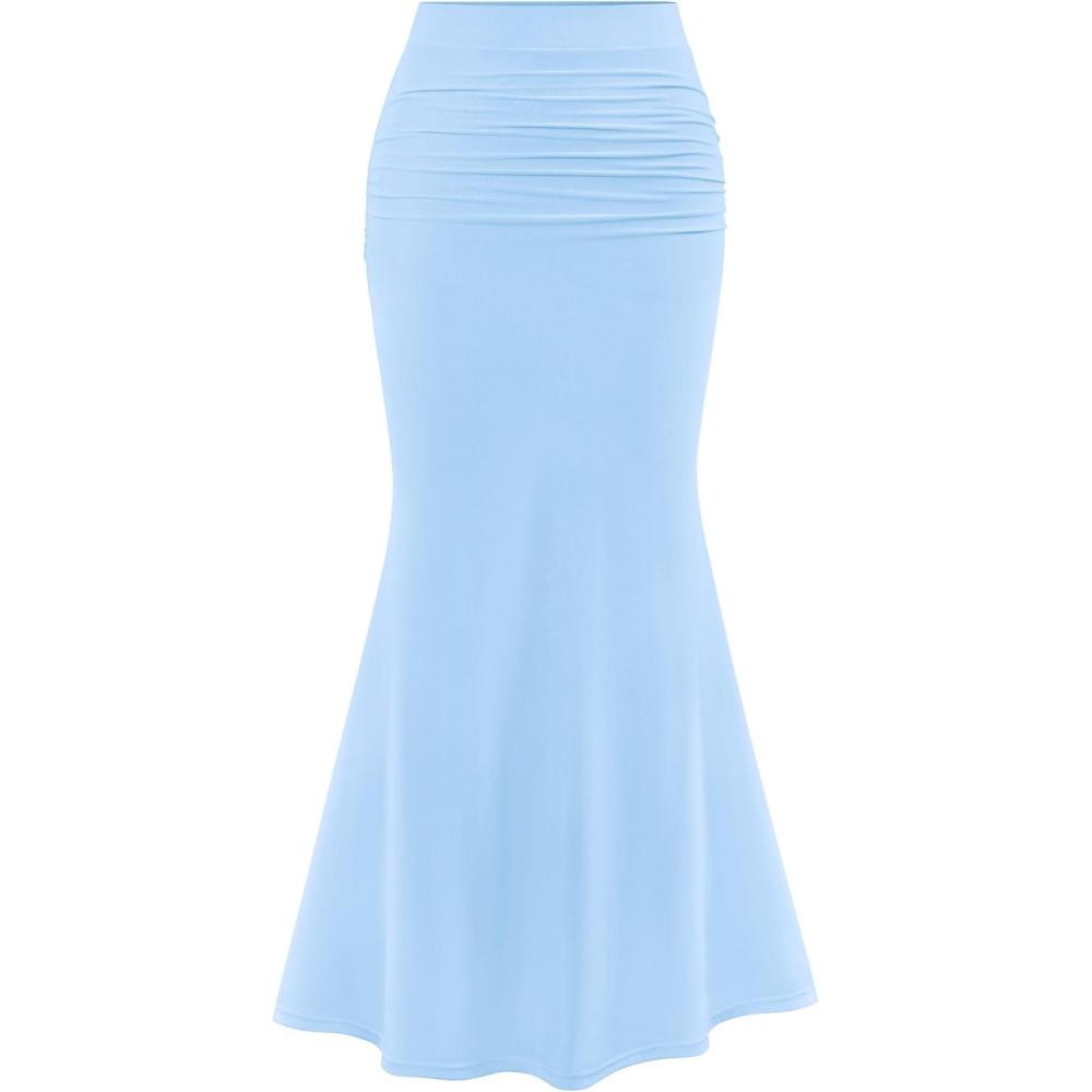 PRETTYGARDEN Women Bodycon Mermaid Skirt 2025 Spring Summer Casual Fitted Mesh High Waisted Ruched Maxi Long Going Out Outfit(Sky Blue)