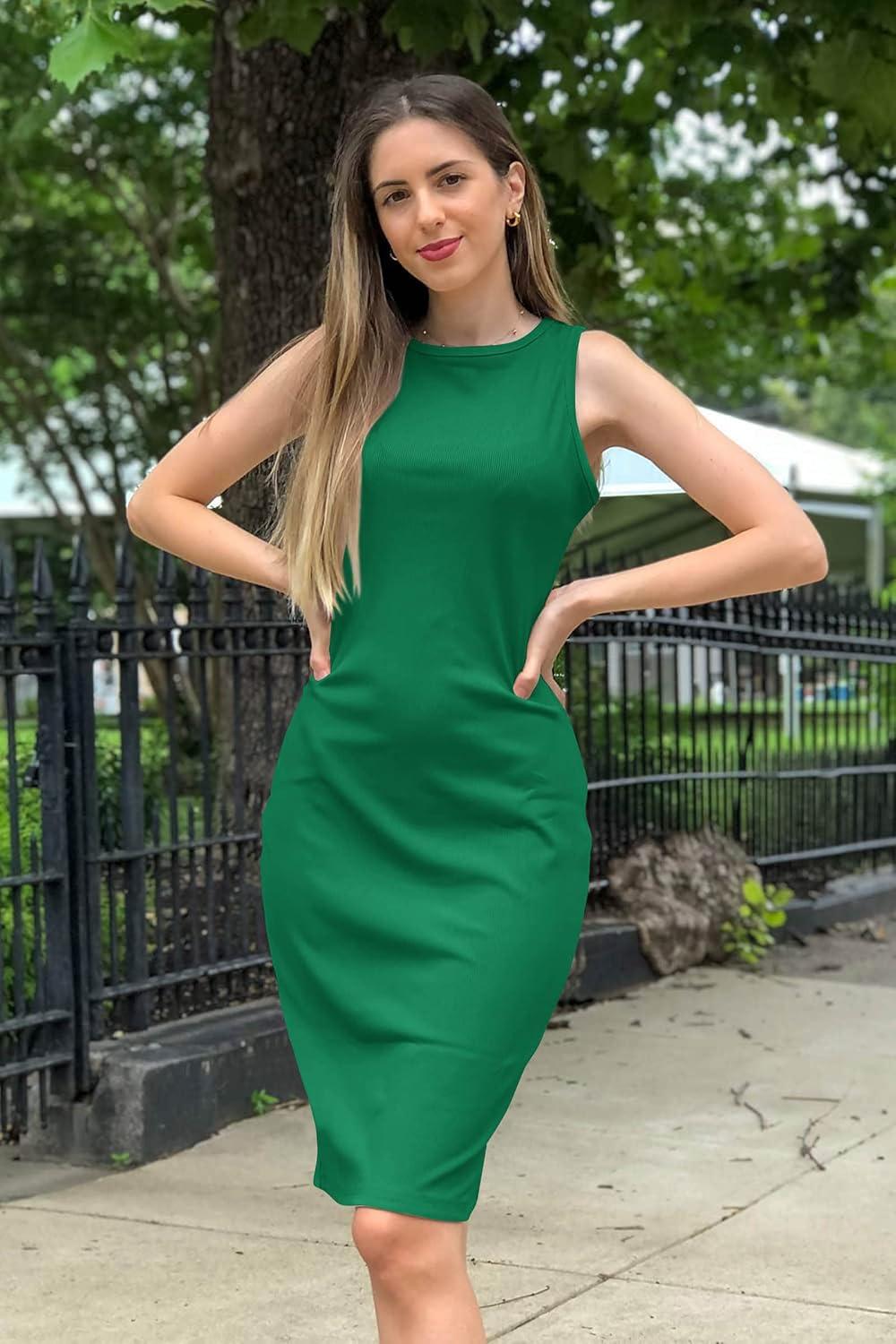 PRETTYGARDEN Women Bodycon Midi Dress 2025 Summer Spring Casual Vacation Sundress Fitted Sleeveless Tank Dresses(Green)