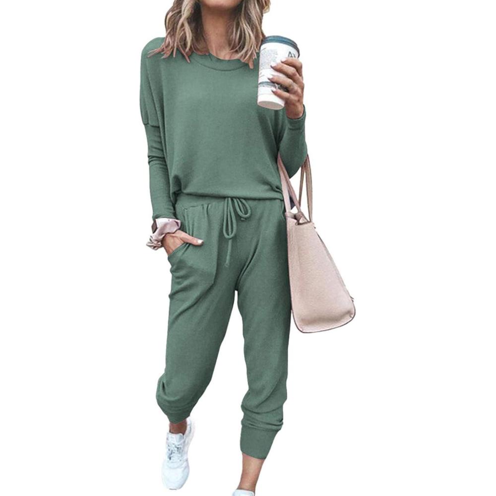 PRETTYGARDEN Women Fall 2 Piece Lounge Outfit Long Sleeve Tops High Waisted Jogger Pants Set Spring Travel Clothes Tracksuit(Light Green)