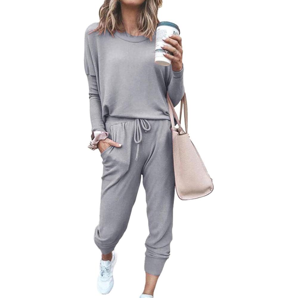 PRETTYGARDEN Women Fall 2 Piece Lounge Outfit Long Sleeve Tops High Waisted Jogger Pants Set Spring Travel Clothes Tracksuit(Light Grey)