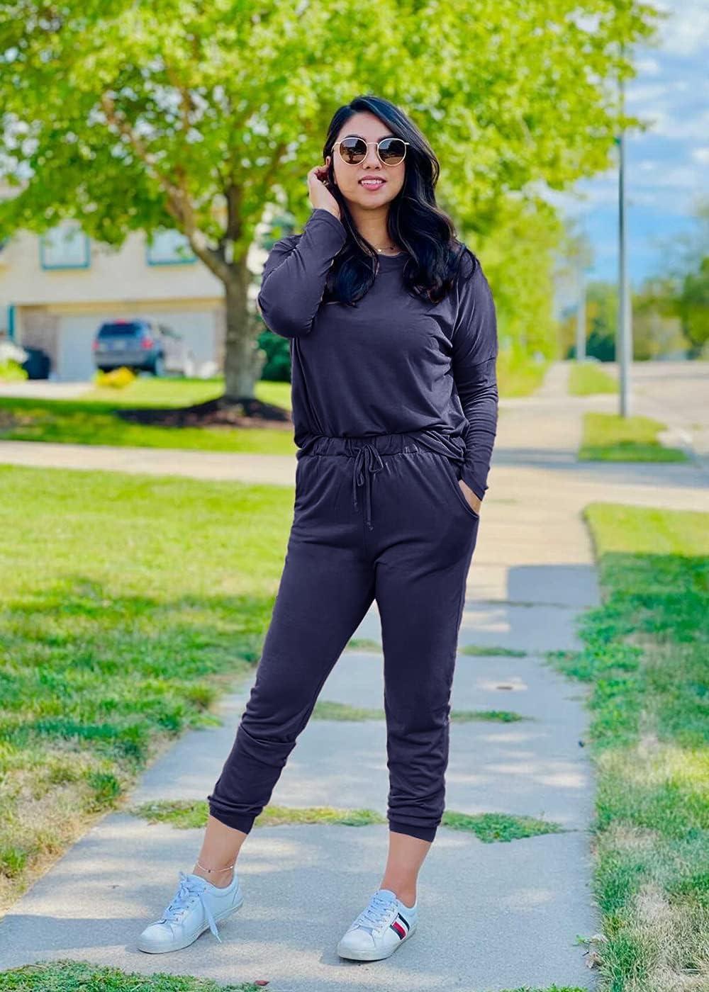 PRETTYGARDEN Women Fall 2 Piece Lounge Outfit Long Sleeve Tops High Waisted Jogger Pants Set Spring Travel Clothes Tracksuit(Light Grey)