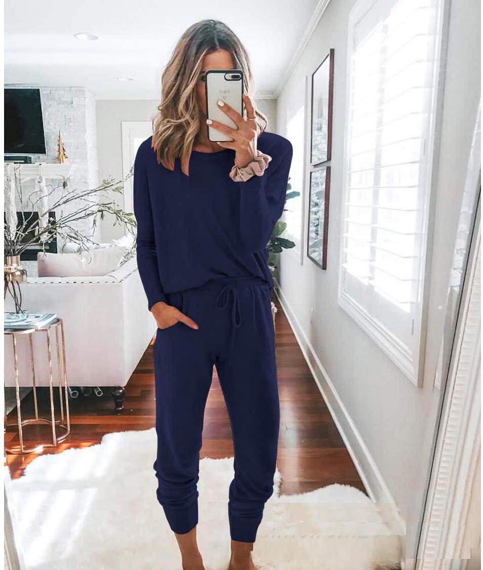 PRETTYGARDEN Women Fall 2 Piece Lounge Outfit Long Sleeve Tops High Waisted Jogger Pants Set Spring Travel Clothes Tracksuit(Navy)
