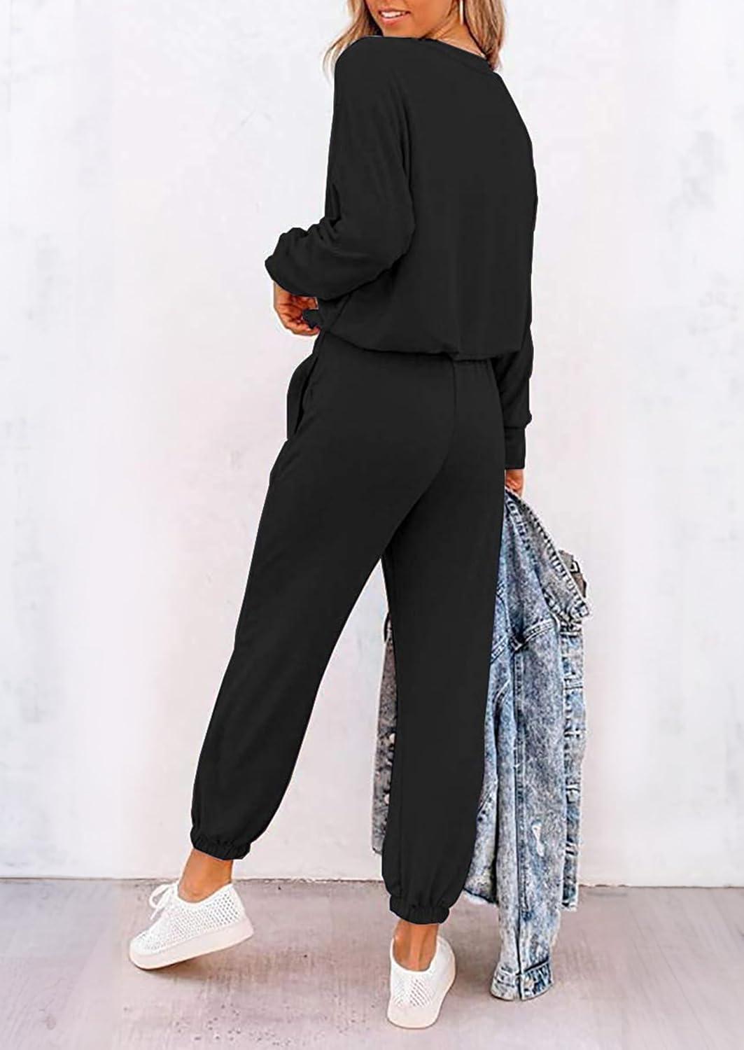 imagePRETTYGARDEN Women Fall 2 Piece Lounge Outfit Long Sleeve Tops High Waisted Jogger Pants Set Spring Travel Clothes TracksuitPatternedblack