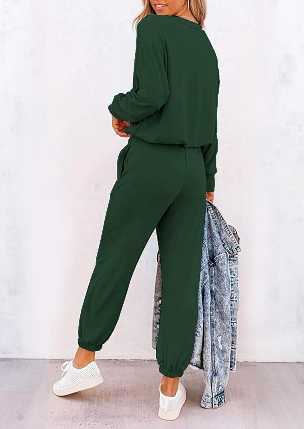 imagePRETTYGARDEN Women Fall 2 Piece Lounge Outfit Long Sleeve Tops High Waisted Jogger Pants Set Spring Travel Clothes TracksuitPatterneddark Green