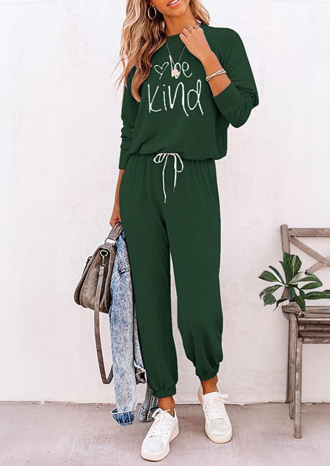 PRETTYGARDEN Women Fall 2 Piece Lounge Outfit Long Sleeve Tops High Waisted Jogger Pants Set Spring Travel Clothes Tracksuit(Patterned-dark Green)
