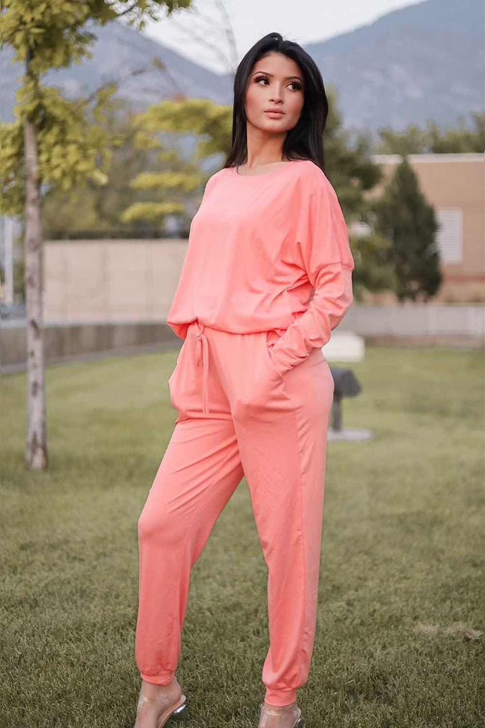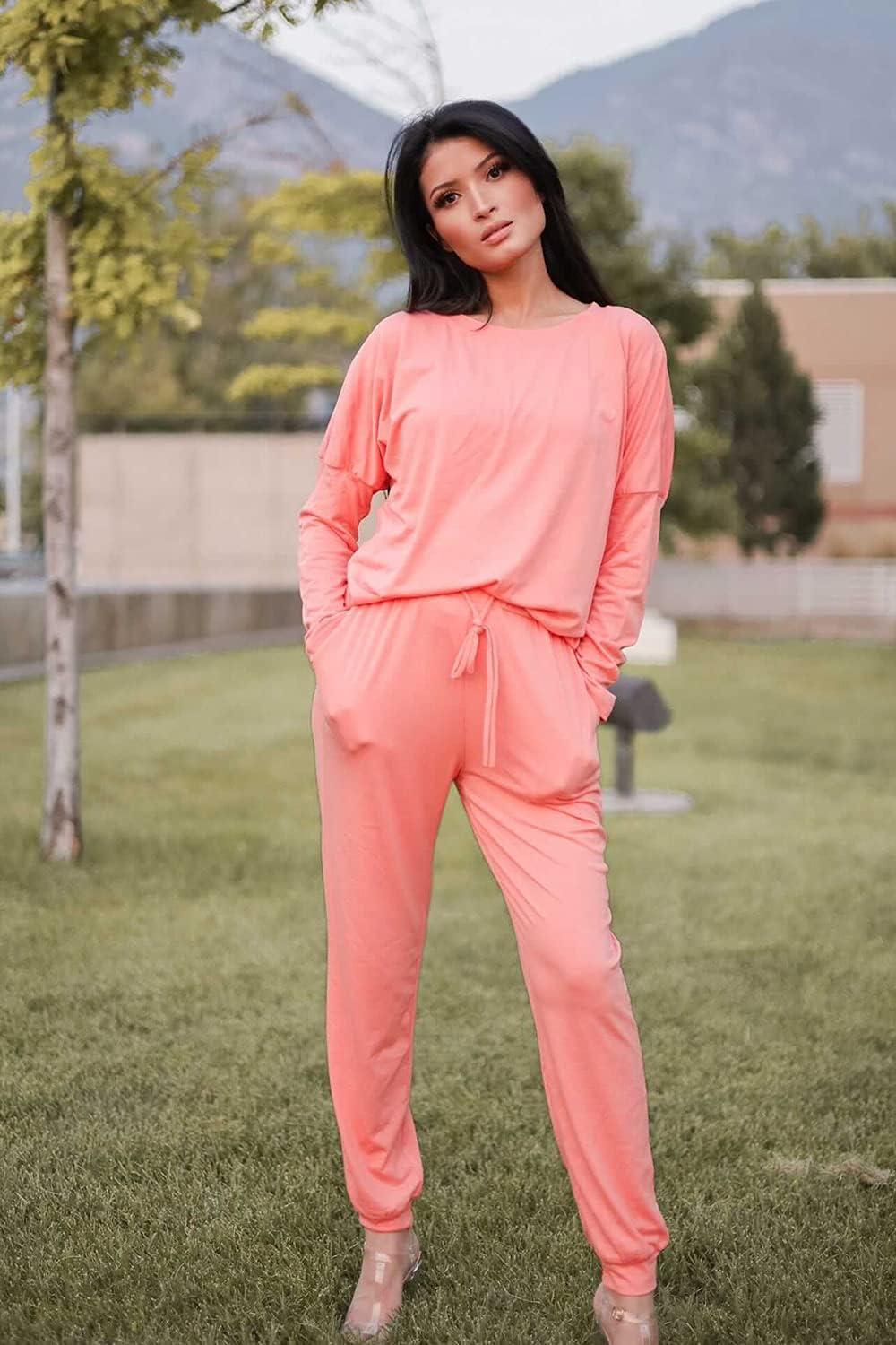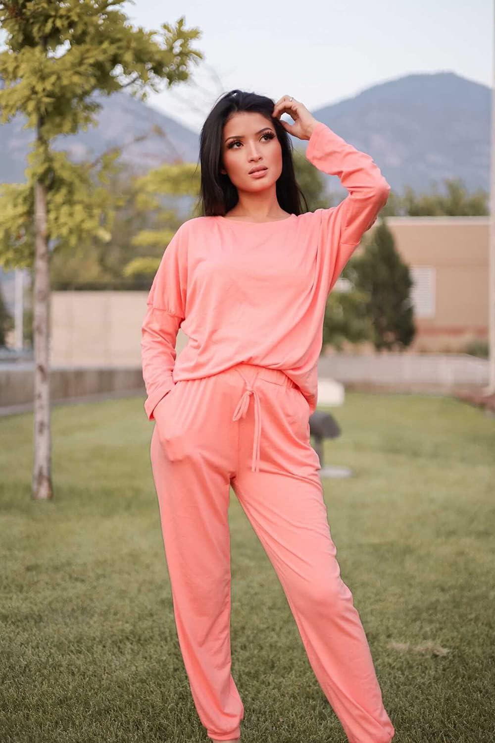 PRETTYGARDEN Women Fall 2 Piece Lounge Outfit Long Sleeve Tops High Waisted Jogger Pants Set Spring Travel Clothes Tracksuit(Pink)