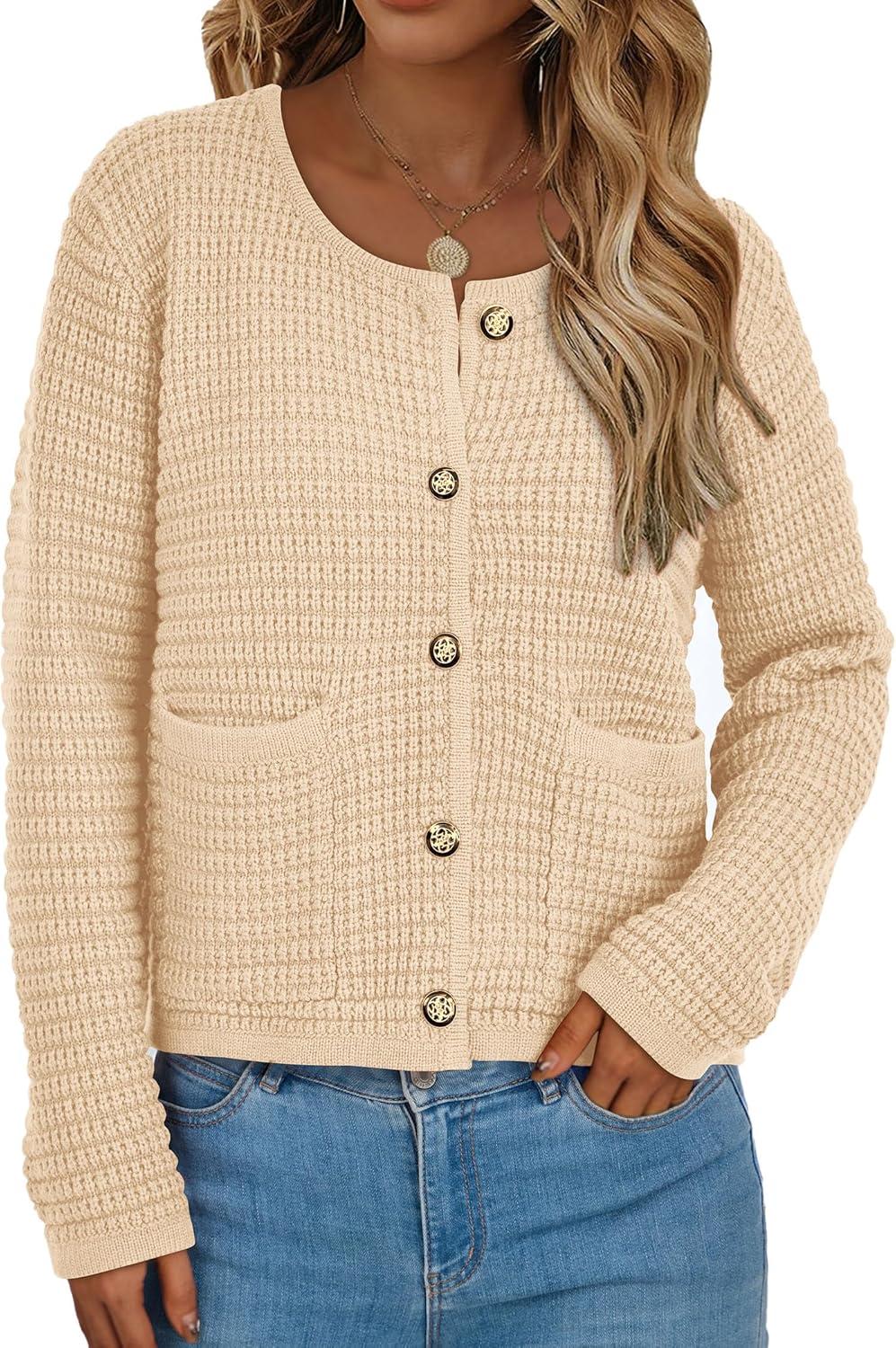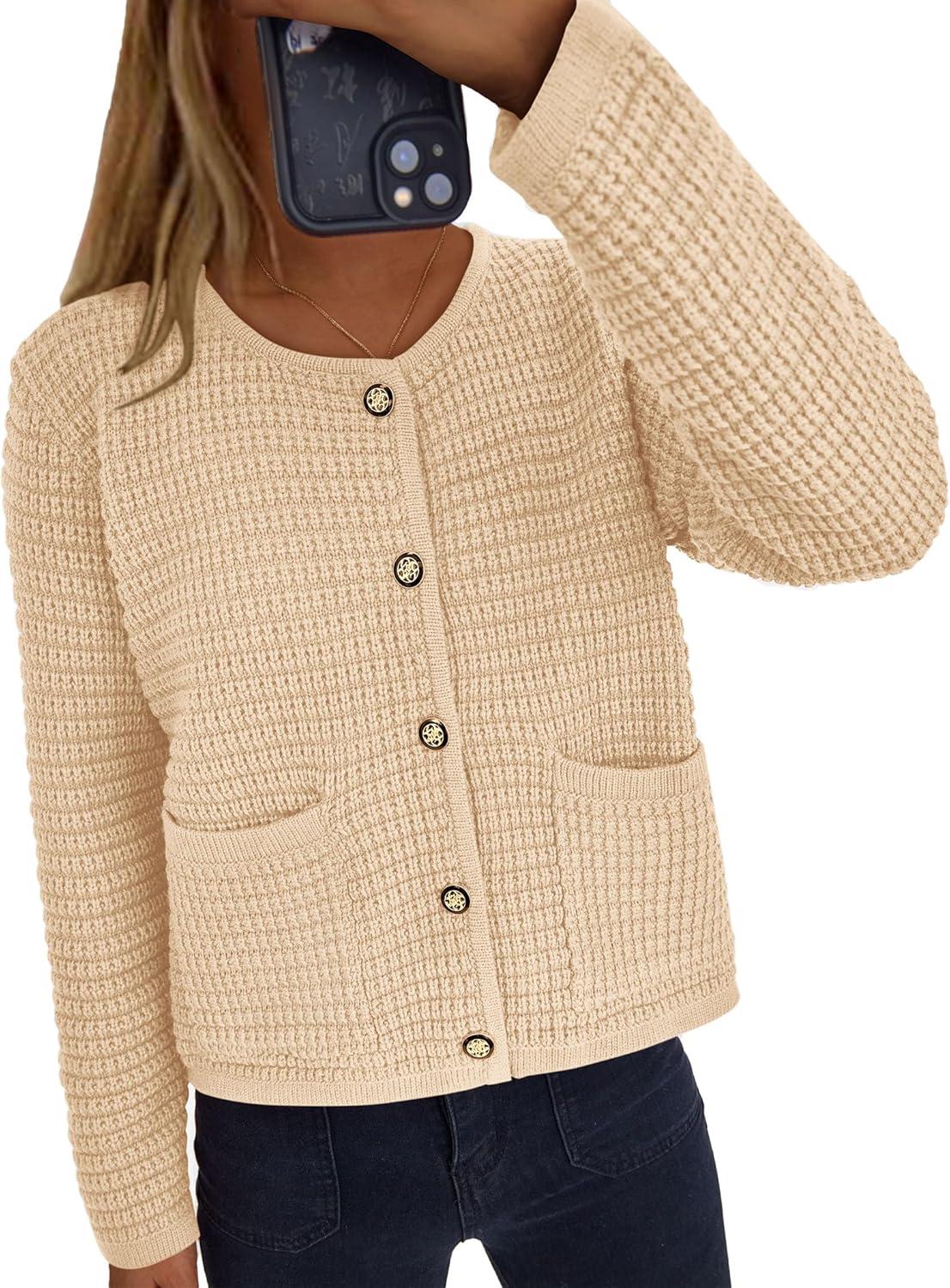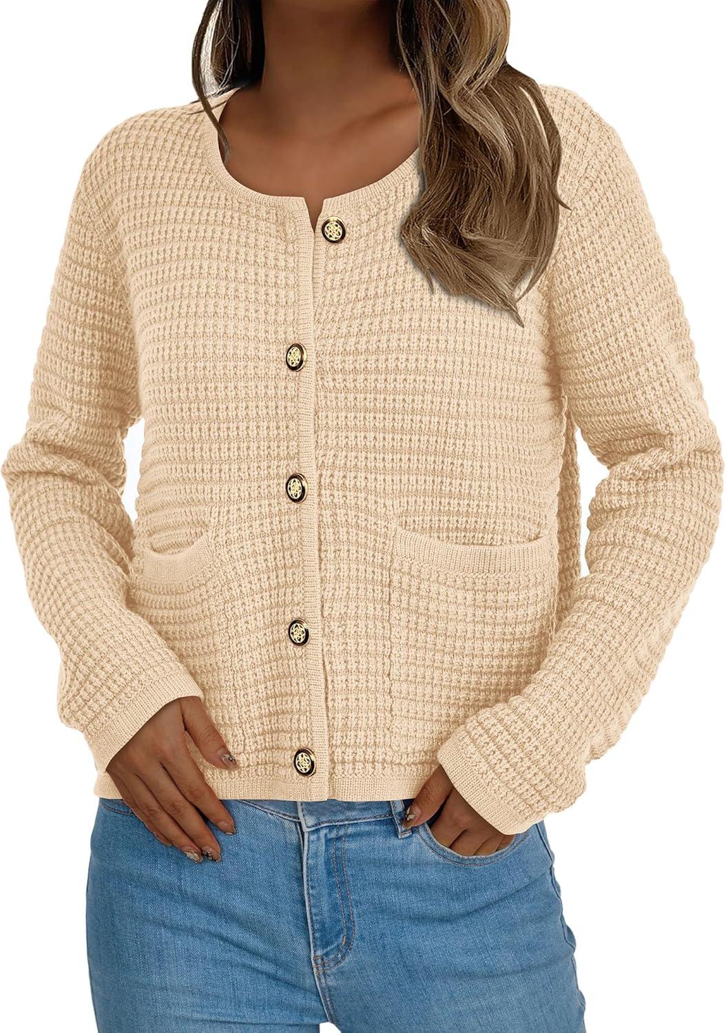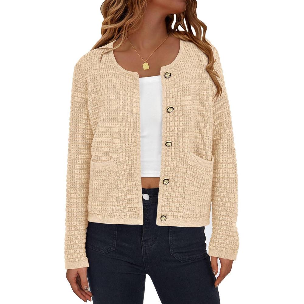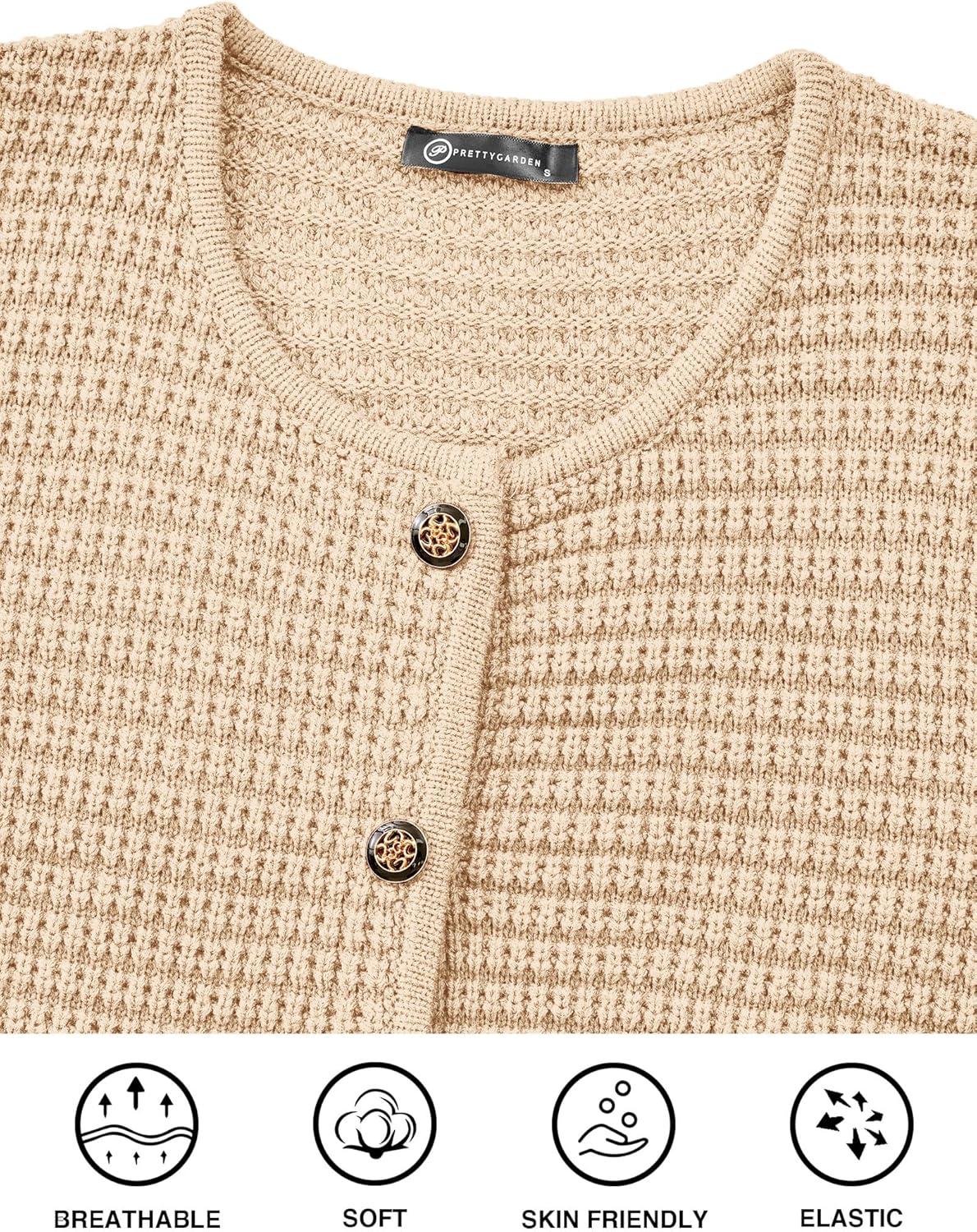 PRETTYGARDEN Women Knit Cardigan Sweaters Fall Fashion Long Sleeve Open Front Button Down Trendy Casual Jacket Winter Clothes(Beige)
