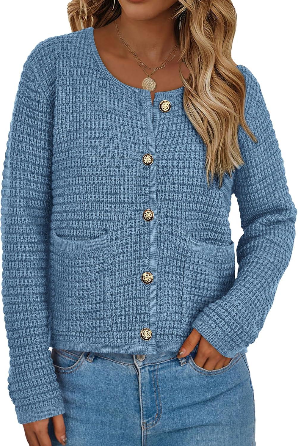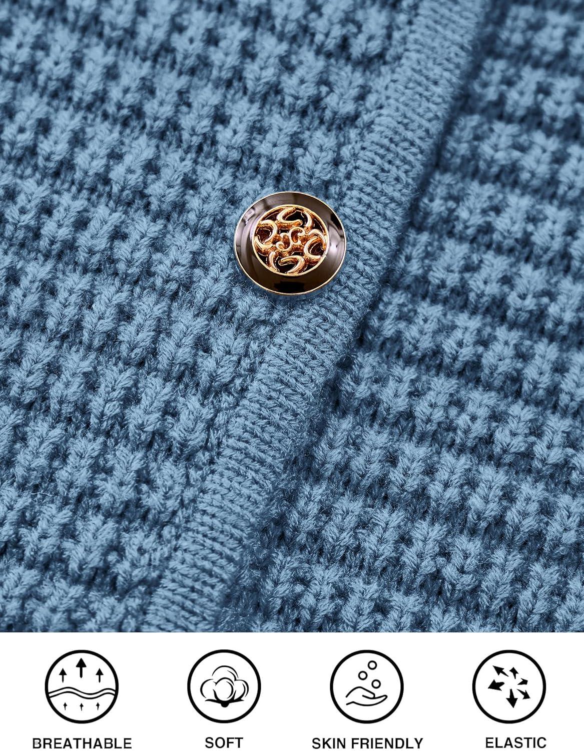 PRETTYGARDEN Women Knit Cardigan Sweaters Fall Fashion Long Sleeve Open Front Button Down Trendy Casual Jacket Winter Clothes(Mist Blue)