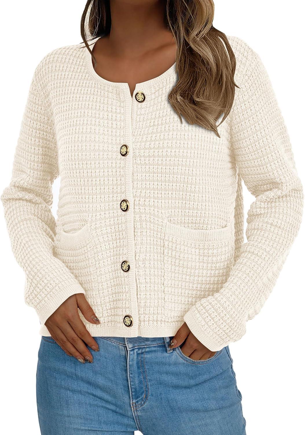 PRETTYGARDEN Women Knit Cardigan Sweaters Fall Fashion Long Sleeve Open Front Button Down Trendy Casual Jacket Winter Clothes(White)