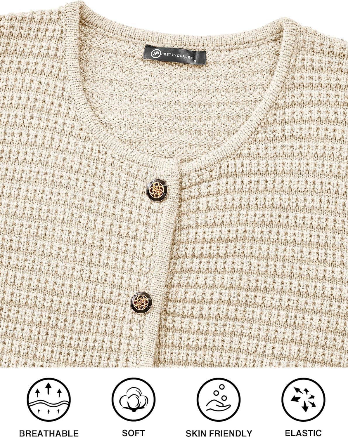 imagePRETTYGARDEN Women Knit Cardigan Sweaters Fall Fashion Long Sleeve Open Front Button Down Trendy Casual Jacket Winter ClothesWhite